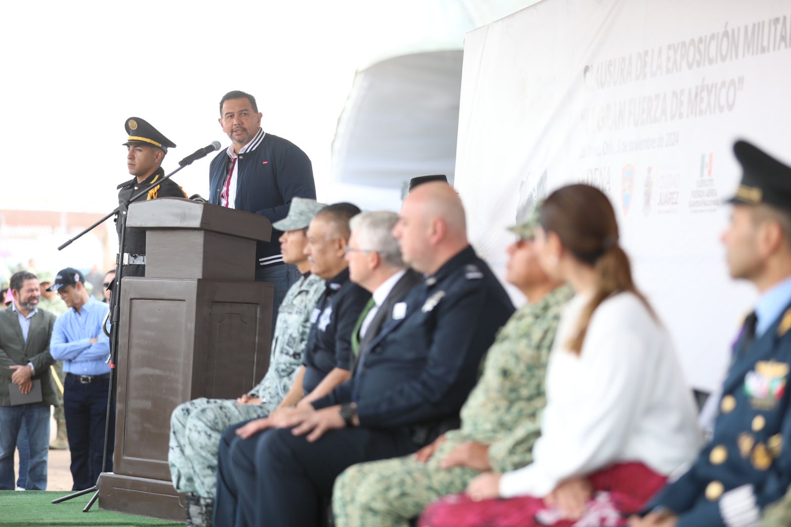 El Presidente Municipal, Cruz Pérez Cuéllar, ofreció un mensaje durante el protocolo de clausura; “estamos muy agradecidos por la presencia de esta exposición que hoy culmina con un número impresionante de 440 mil asistentes, además, de las visitas que realizaron 430 efectivos militares a escuelas, parques y plazas de la ciudad”.