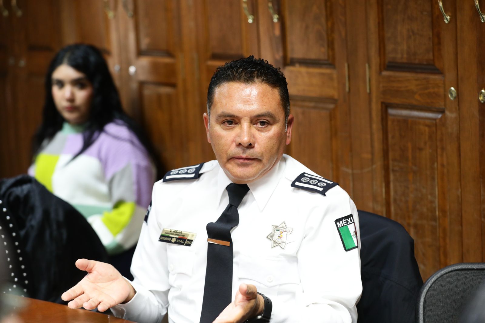 El comandante de Seguridad Vial, Víctor Mejía, presentó a los regidores José Eduardo Valenzuela Martínez, Karla Michaeel Escalante Ramírez y Luz Clara Cristo Sosa los trabajos desarrollados durante la pasada administración.