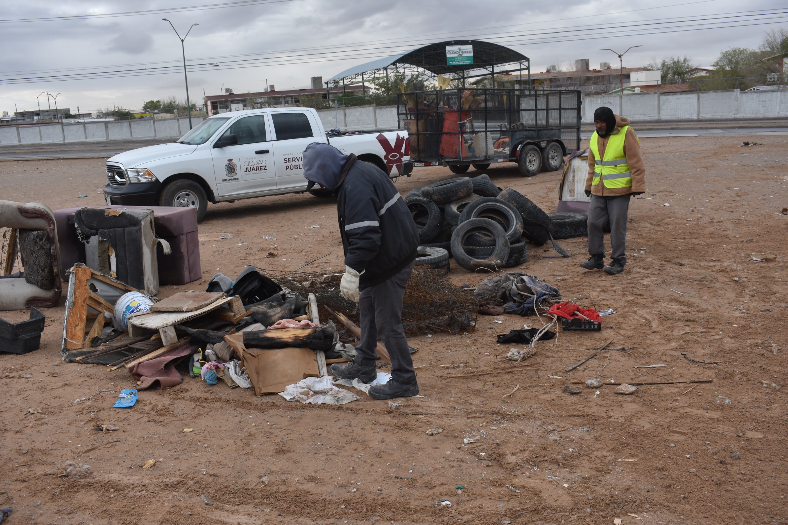 Personal de la Dirección de Limpia trabajó en el retiro de basura, tiliches, llantas y escombro en un predio baldío ubicado sobre las calles Parajes del Sur y Mar de Plata.