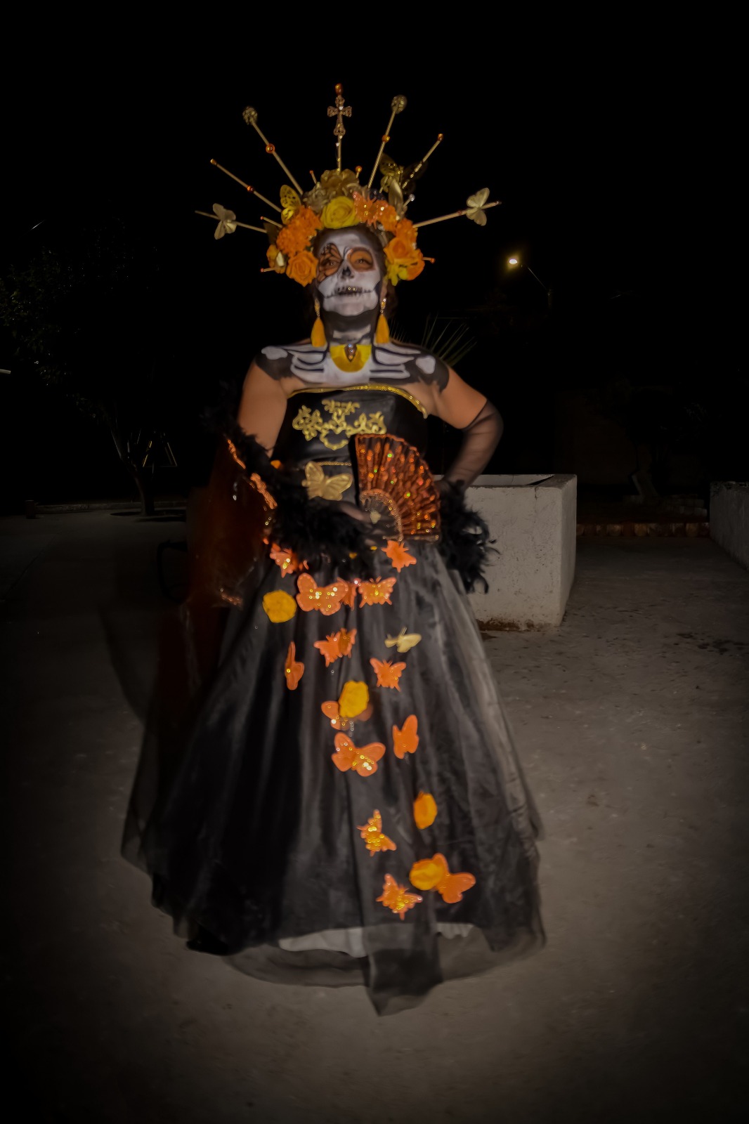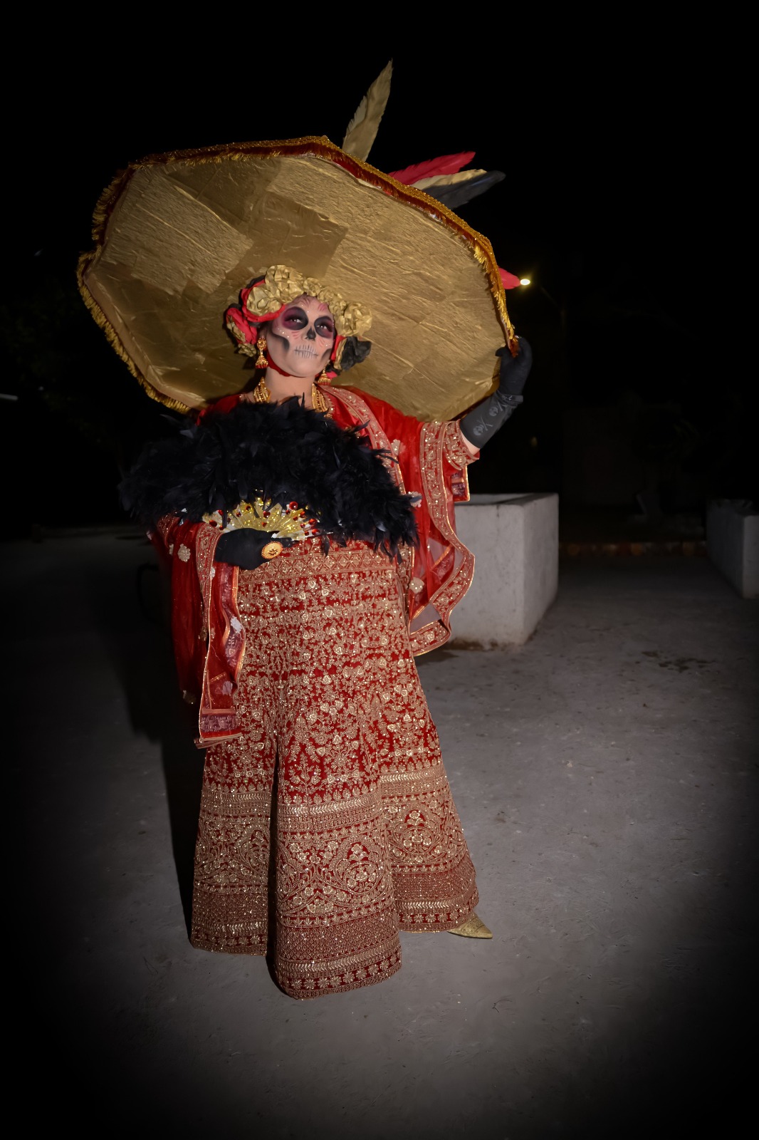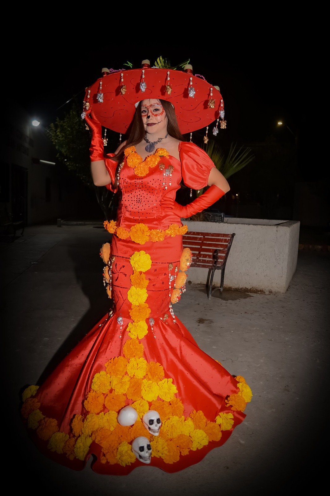 Quince participantes desfilaron por una pasarela especialmente decorada, destacándose un inmenso altar dedicado a San Antonio, con fotografías de seres queridos en honor al Día de Muertos. Los concursantes, alumnos de distintos talleres del centro comunitario, sorprendieron al público con su creatividad y sus elaborados atuendos, confeccionados artesanalmente con detalles únicos y dignos de manos profesionales. Algunos vestuarios fueron hechos con hojas de tamal y aplicaciones de chiles, otros con papel crepé y luces, incluso algunos incluían altares en la cola del vestido. La mayoría complementó sus trajes con sombreros, penachos, coronas, flores, calaveras, y un maquillaje extraordinario que dejó a todos impactados.
