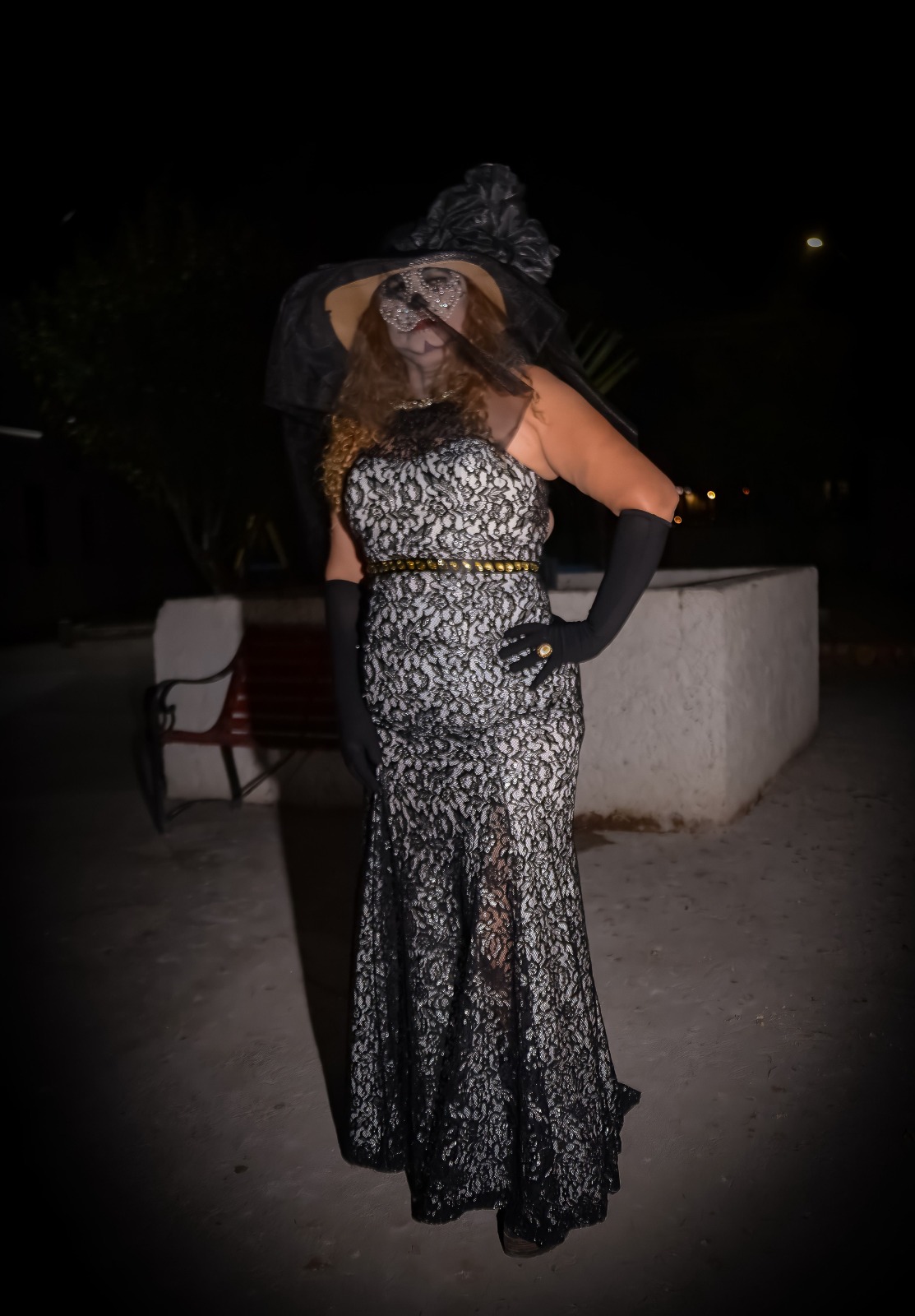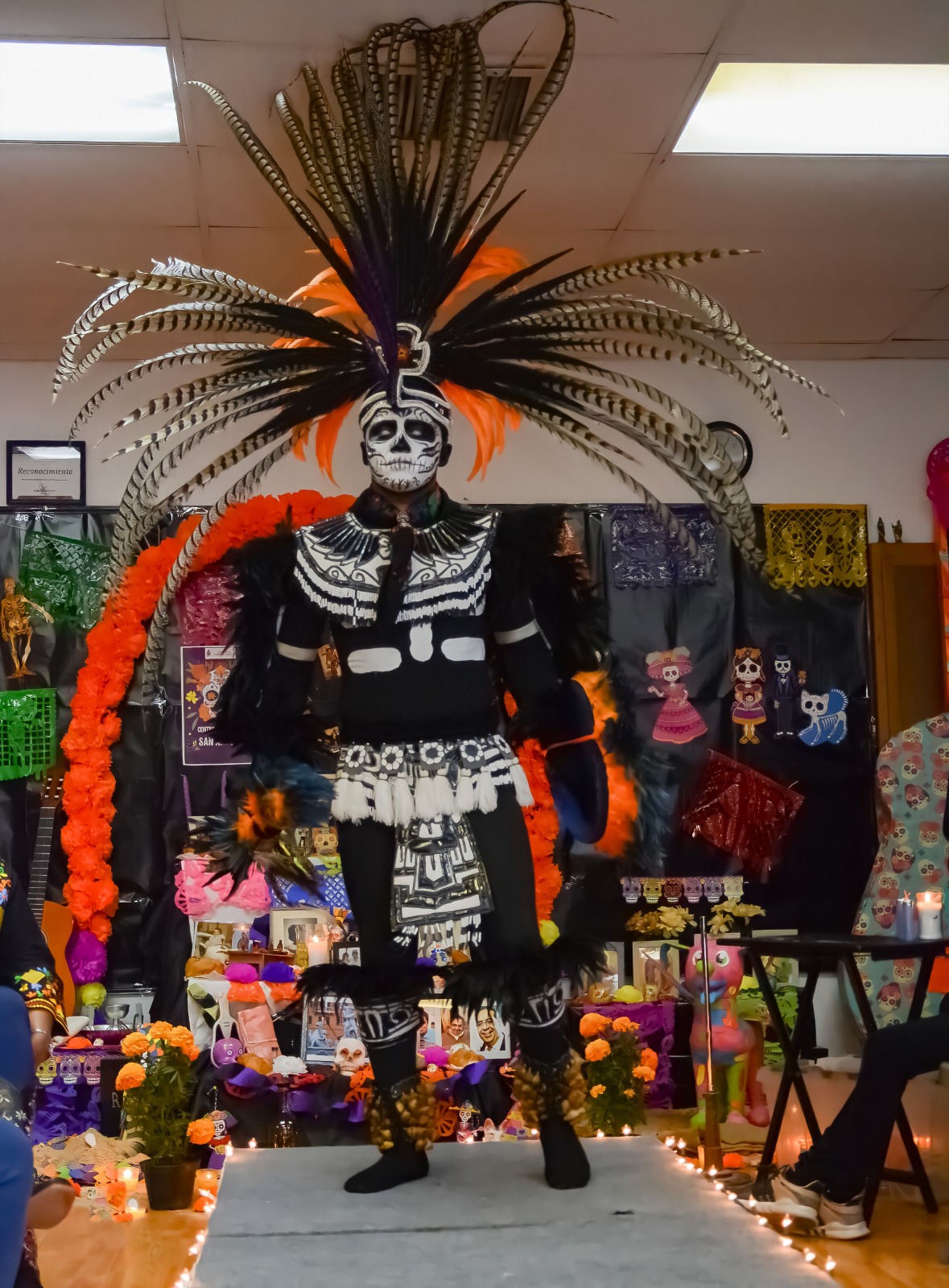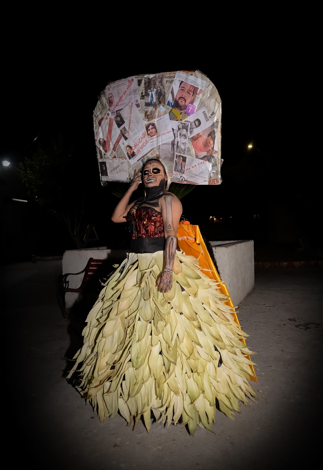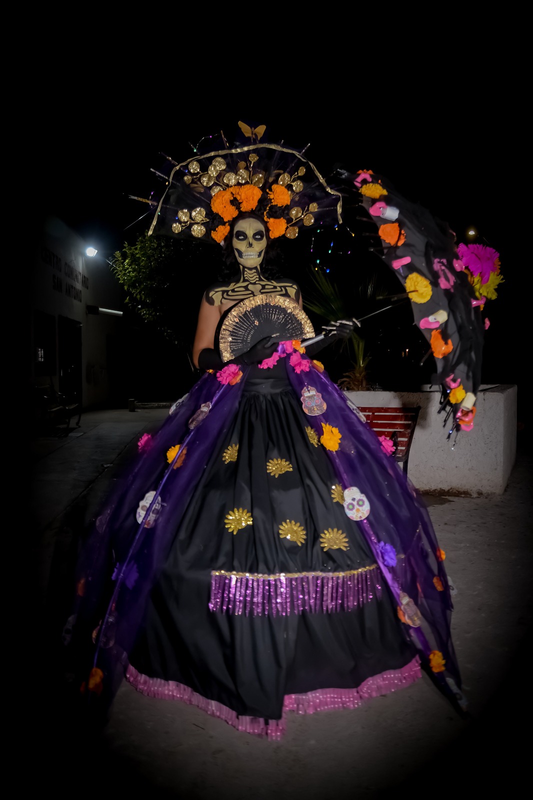 Quince participantes desfilaron por una pasarela especialmente decorada, destacándose un inmenso altar dedicado a San Antonio, con fotografías de seres queridos en honor al Día de Muertos. Los concursantes, alumnos de distintos talleres del centro comunitario, sorprendieron al público con su creatividad y sus elaborados atuendos, confeccionados artesanalmente con detalles únicos y dignos de manos profesionales. Algunos vestuarios fueron hechos con hojas de tamal y aplicaciones de chiles, otros con papel crepé y luces, incluso algunos incluían altares en la cola del vestido. La mayoría complementó sus trajes con sombreros, penachos, coronas, flores, calaveras, y un maquillaje extraordinario que dejó a todos impactados.