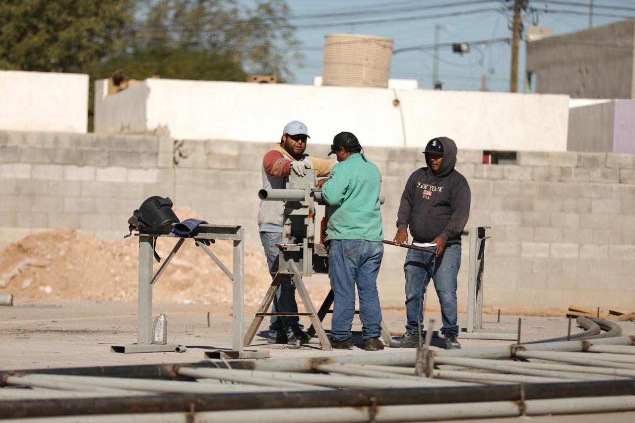 Daniel González García, titular de la dependencia, comentó que el personal de la misma ya terminó con la cimentación que sostendrá la base del domo, por lo que actualmente están trabajando en habilitar la estructura, la cual dará sombra a una cancha de usos múltiples y las gradas de la escuela.