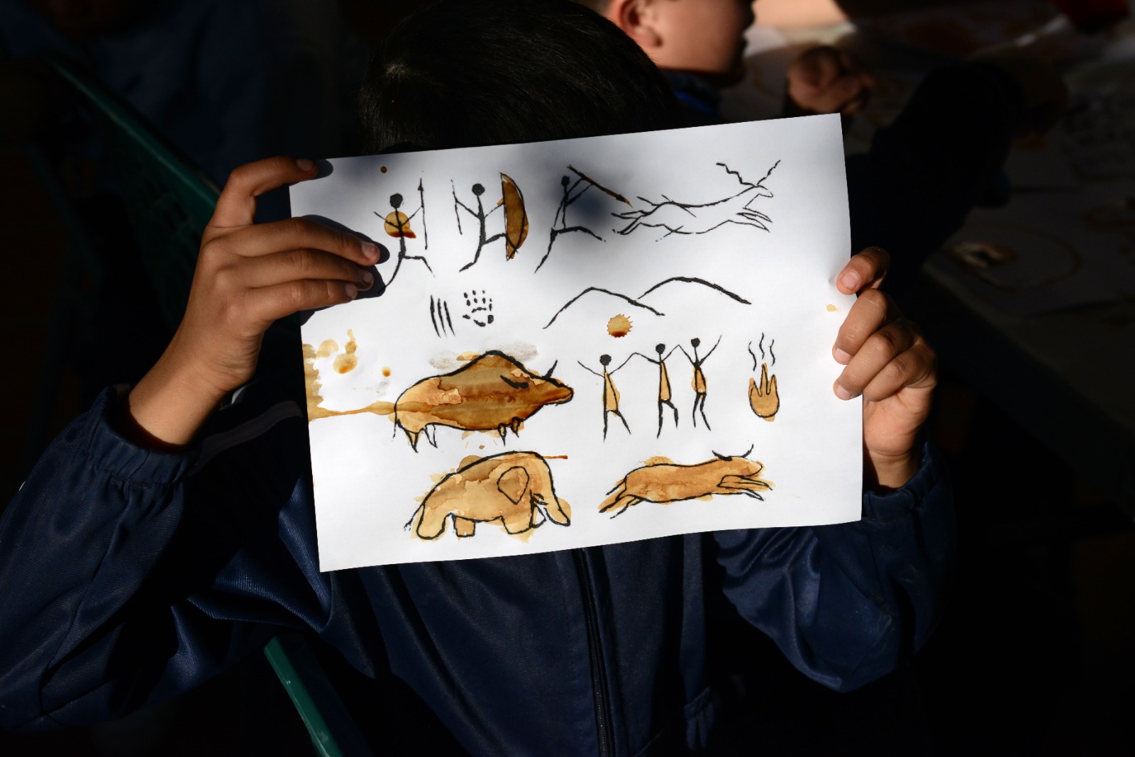La experiencia no se limitó a observar, ya que los estudiantes participaron en talleres creativos en los que elaboraron máscaras, crearon petrograbados utilizando café y modelaron réplicas de culturas antiguas con plastilina.