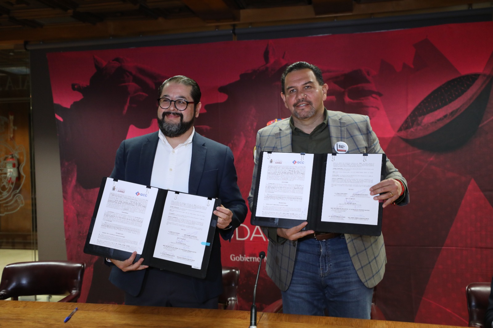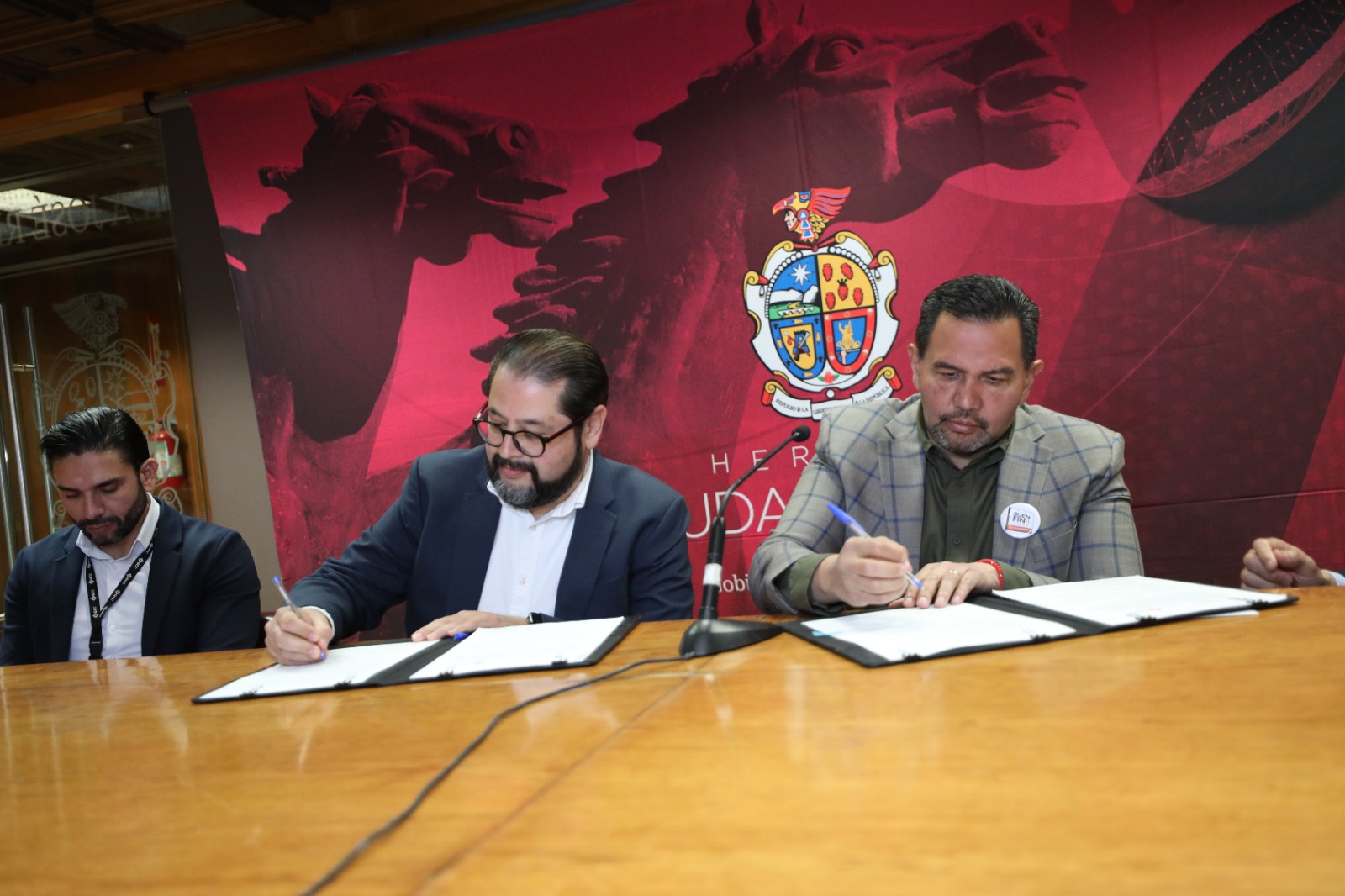 El Presidente Municipal, Cruz Pérez Cuéllar, firmó un convenio de colaboración con Grupo Cementos de Chihuahua (GCC) por medio del cual la empresa contribuirá con el Ayuntamiento patrocinando 3,900 metros cúbicos de concreto.