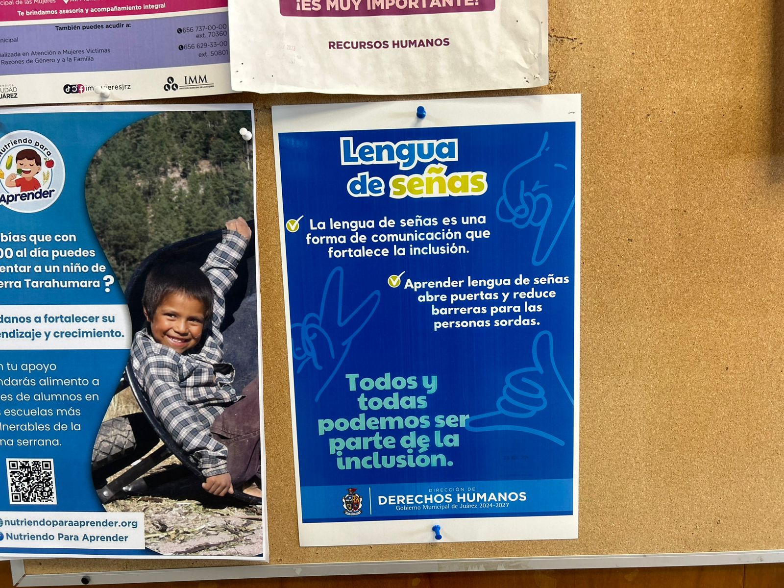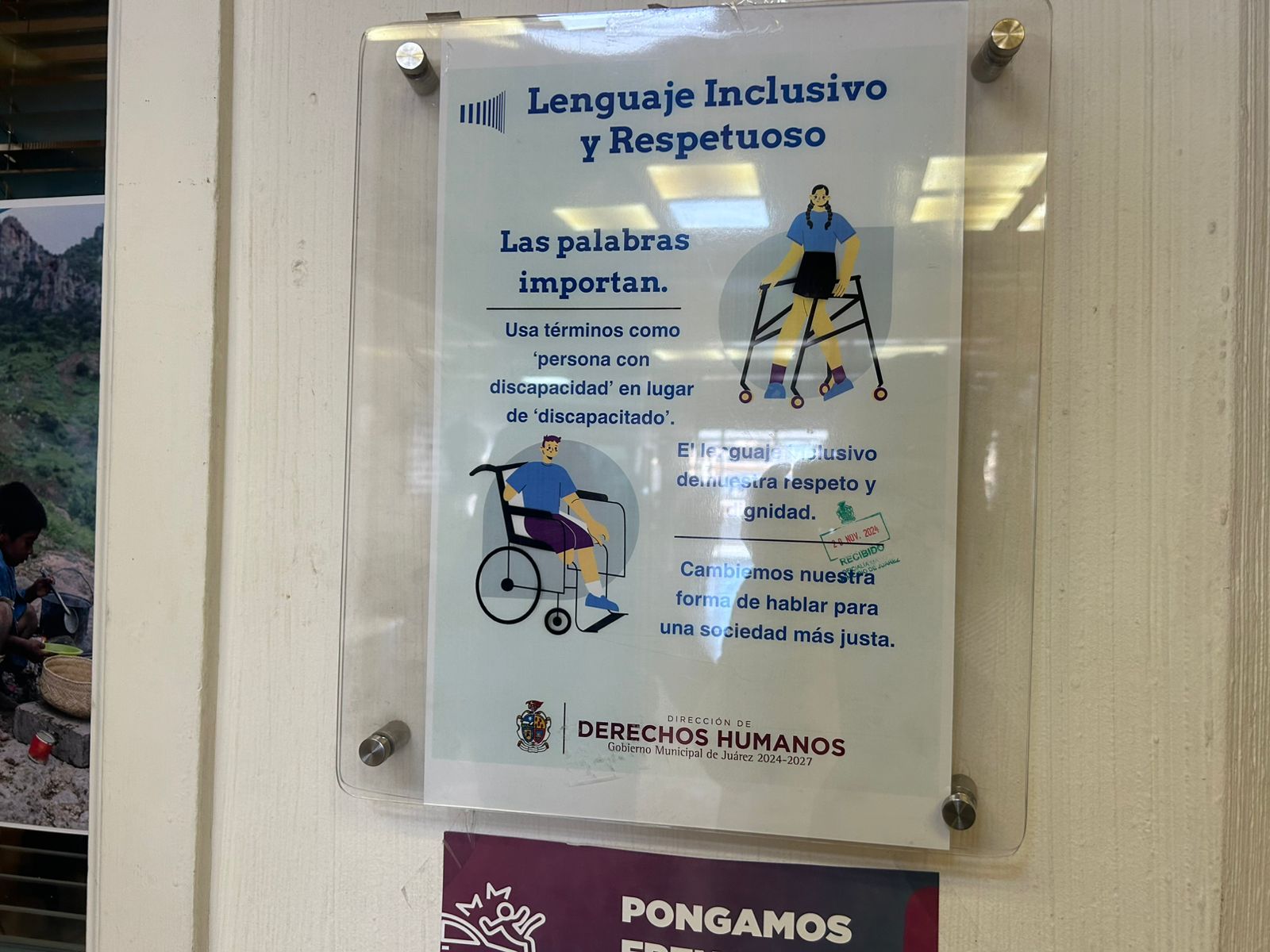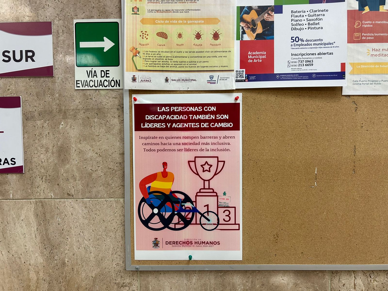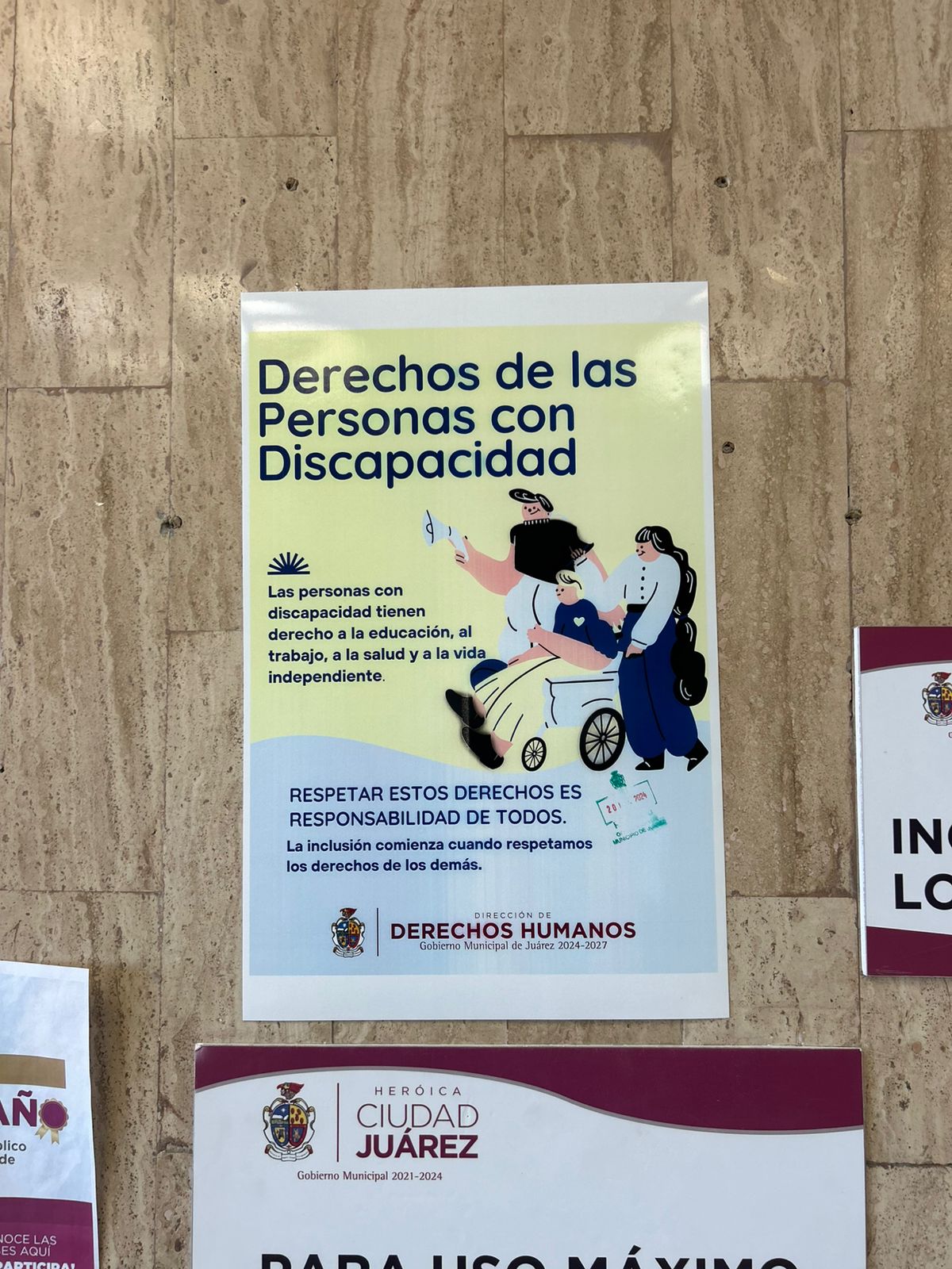 Con el objetivo de visibilizar los derechos de las personas con discapacidad y fomentar una mayor sensibilización e inclusión en la comunidad, personal de la Dirección de Derechos Humanos, llevó a cabo la colocación de carteles en diversas áreas de la Unidad Administrativa “Lic. Benito Juárez” (Presidencia municipal).