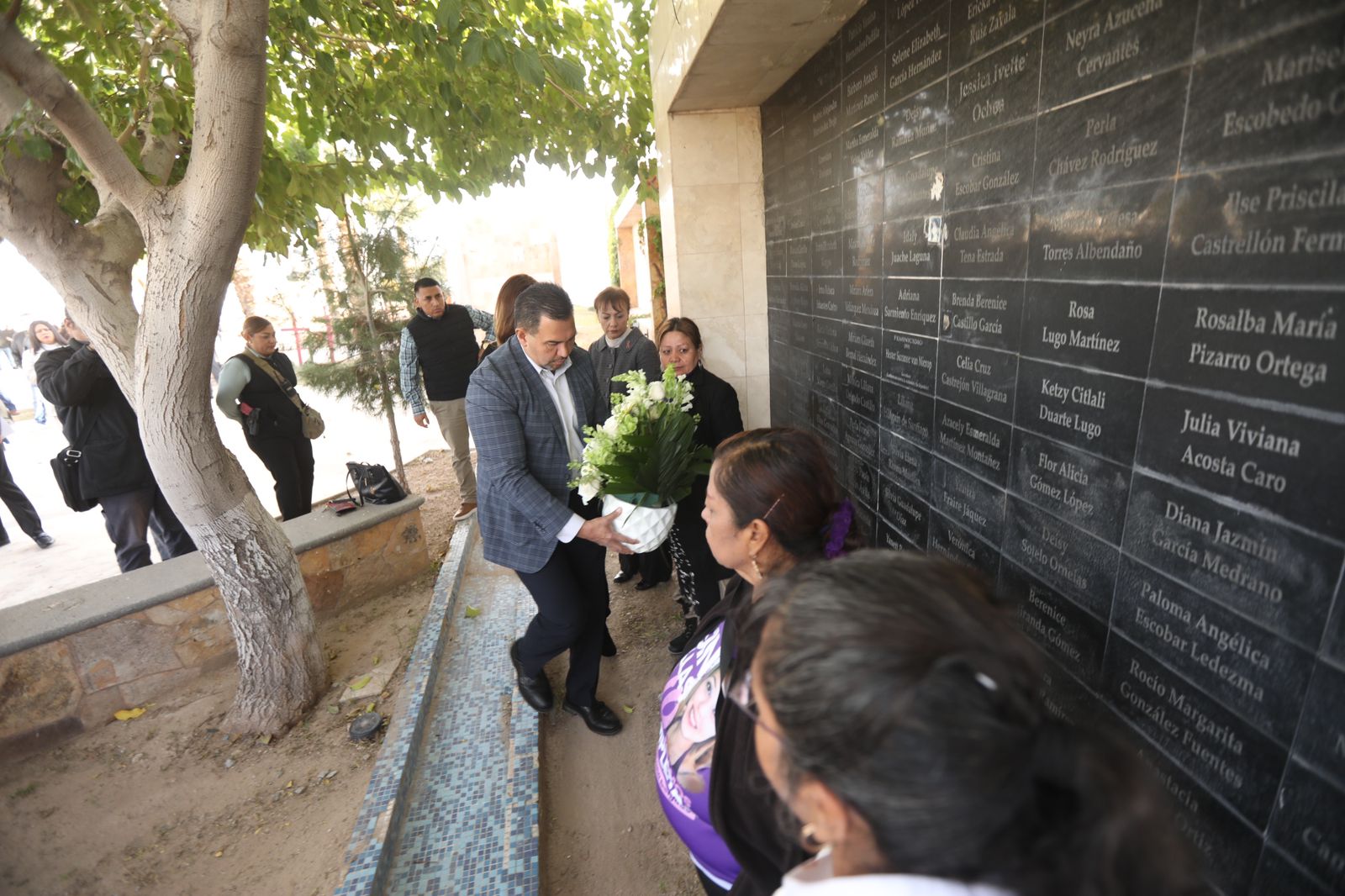 Coloca alcalde ofrenda floral en Memorial a Víctimas de Feminicidio