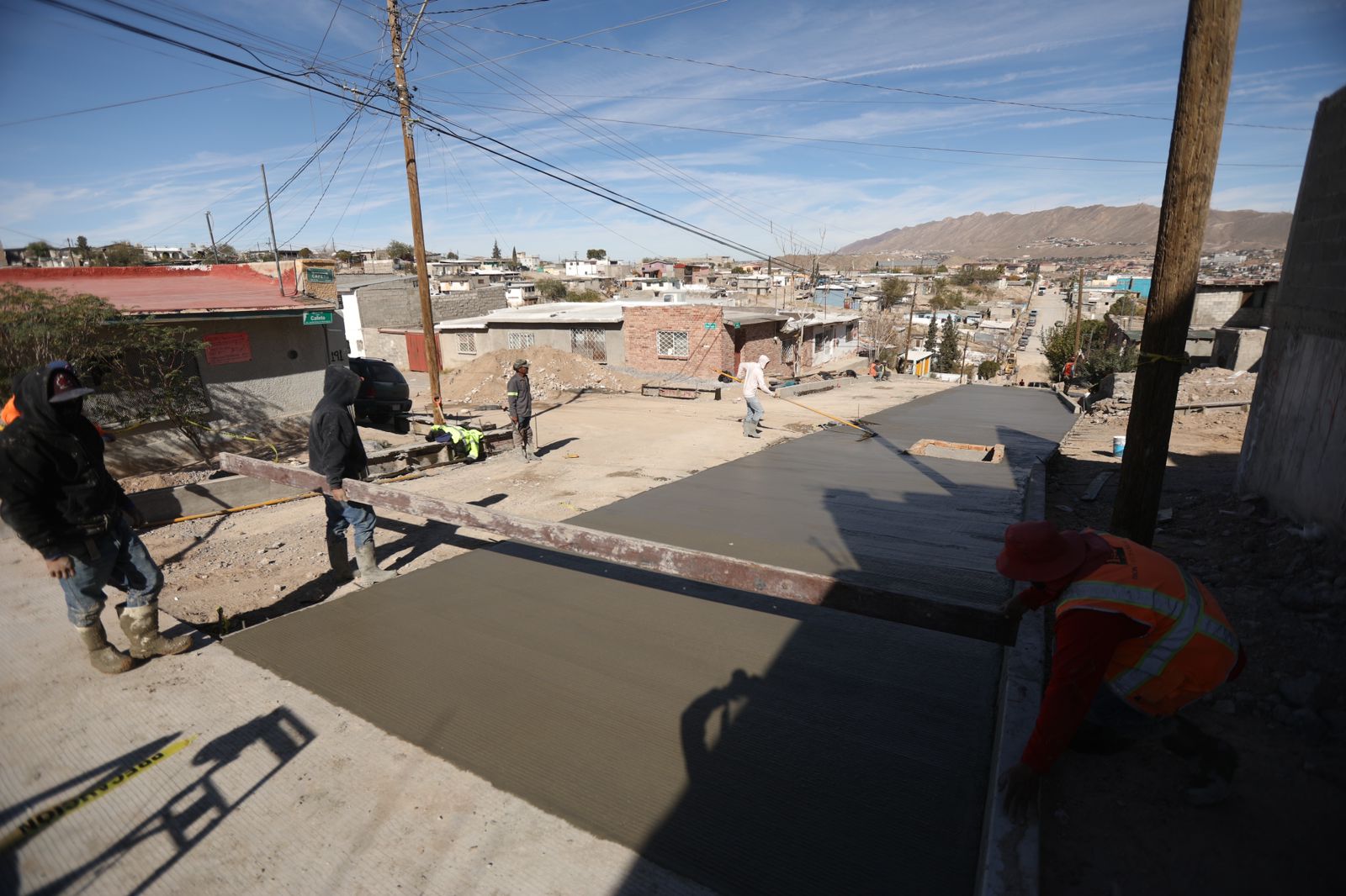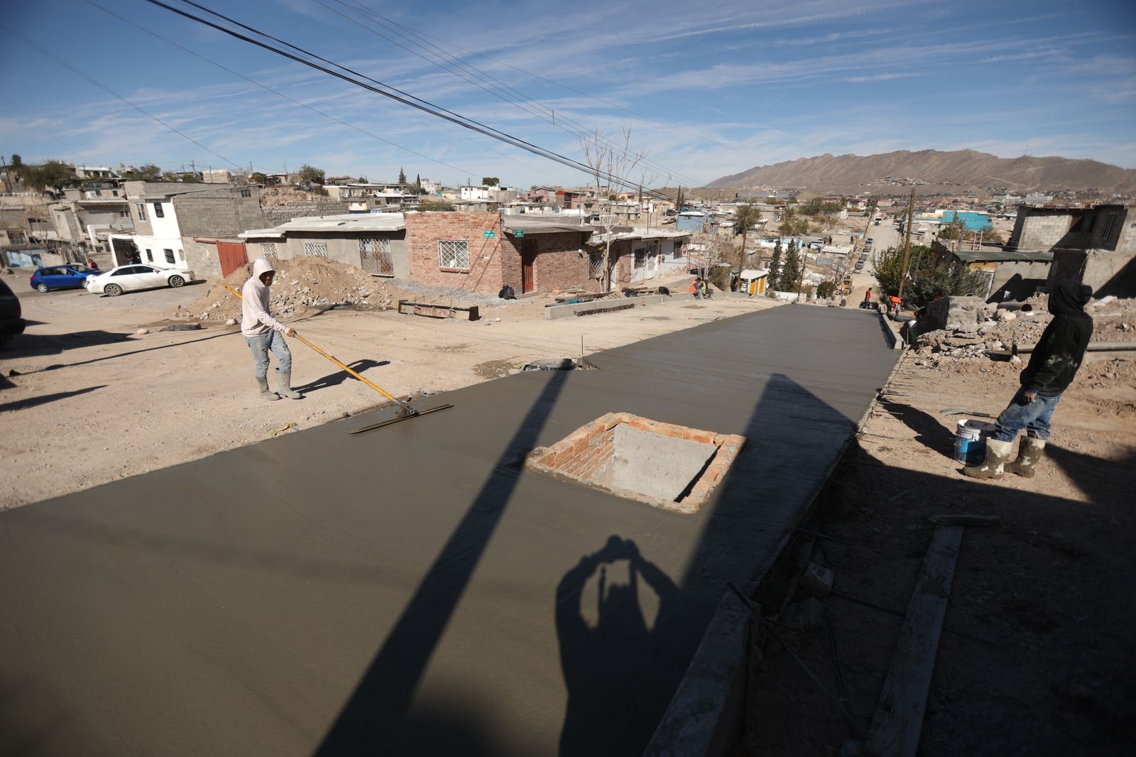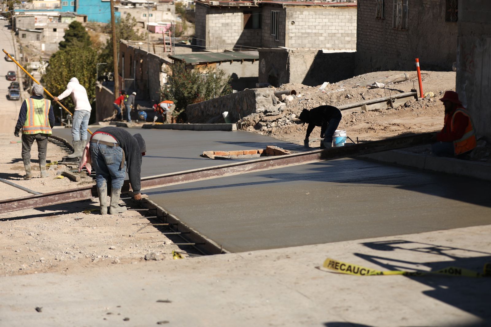 La Dirección General de Obras Públicas continúa trabajando en la construcción de la calle Cafeto, ubicada en la colonia Josefa Ortiz de Domínguez, en la cual se lleva un avance notorio del 60 por ciento.