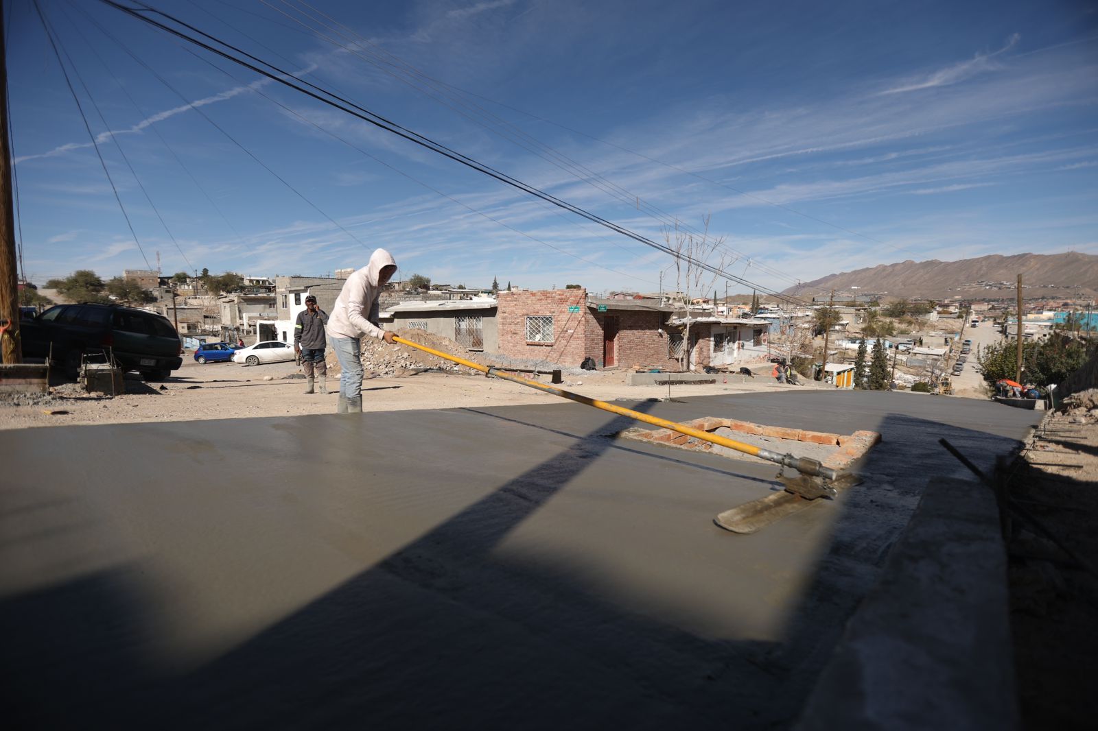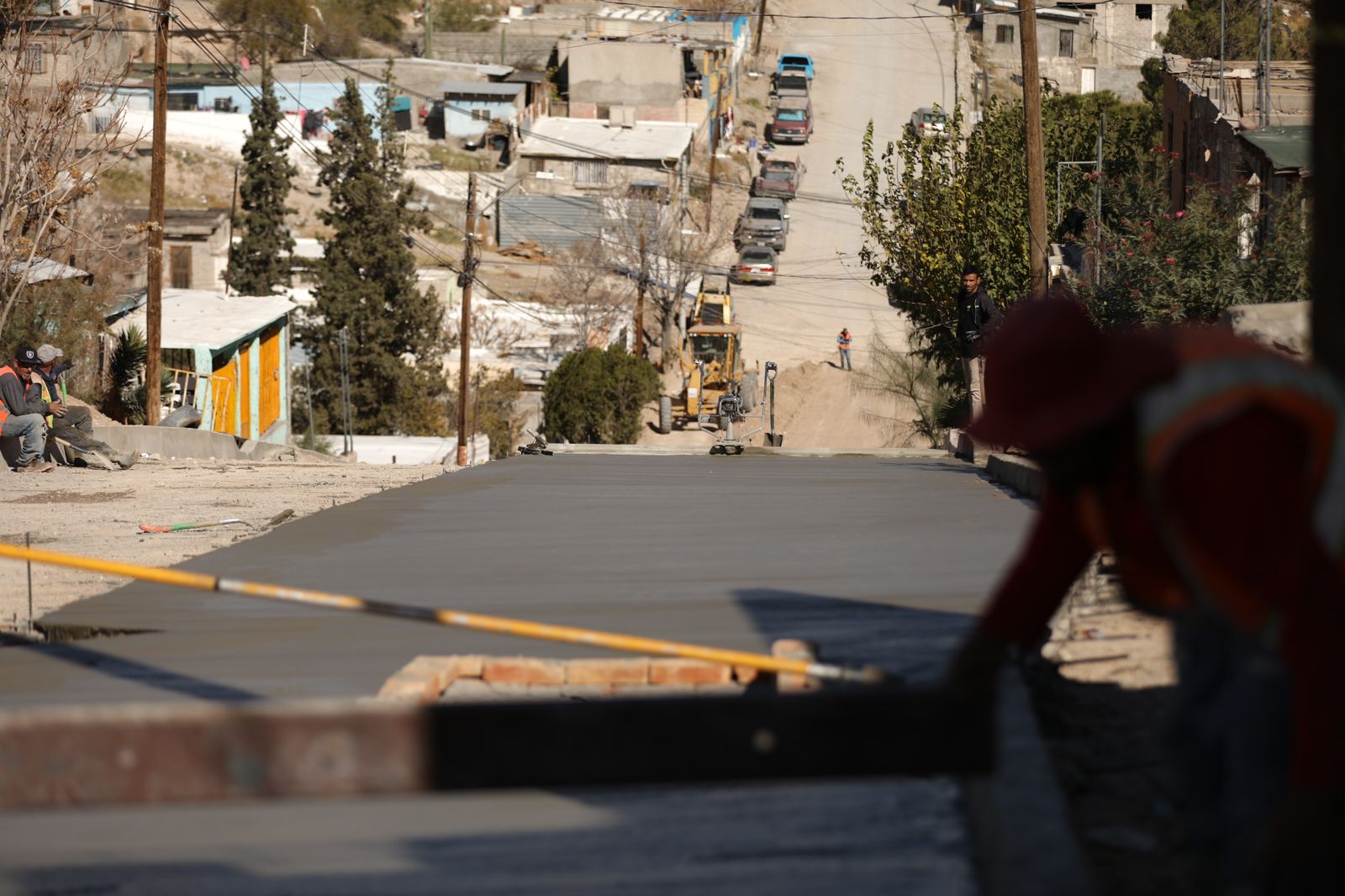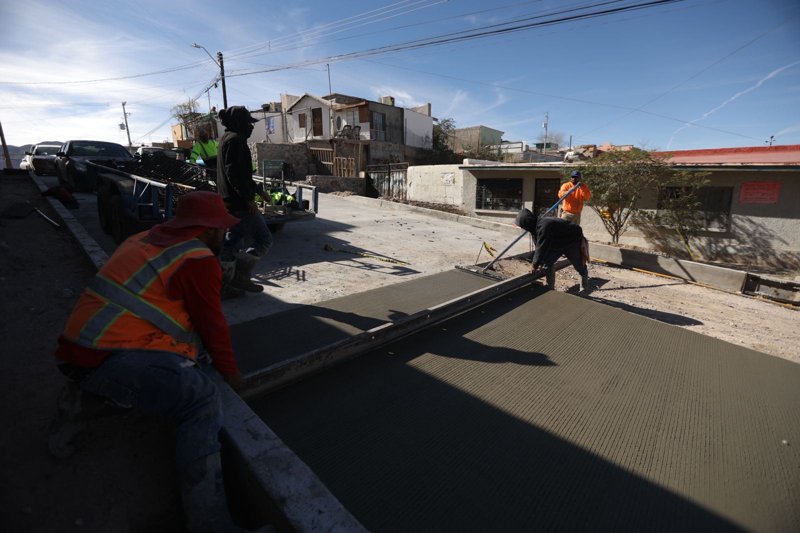La Dirección General de Obras Públicas continúa trabajando en la construcción de la calle Cafeto, ubicada en la colonia Josefa Ortiz de Domínguez, en la cual se lleva un avance notorio del 60 por ciento.