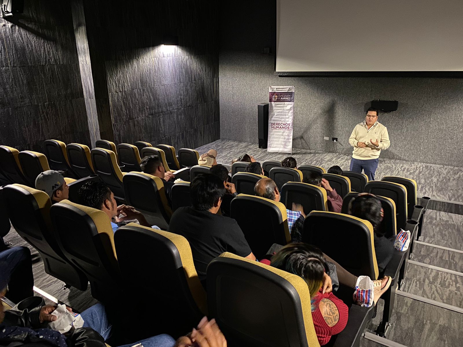 Personal de la Dirección de Derechos Humanos organizó una actividad especial en el Cine Universitario del Centro Cultural de las Fronteras, en el anillo envolvente del Pronaf, con la proyección del documental Campamento Extraordinario.