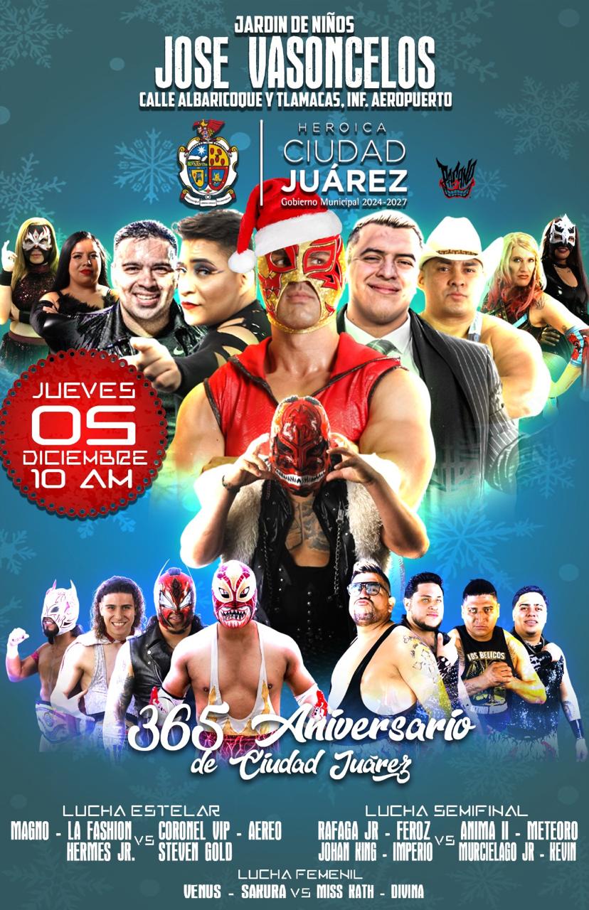 Informó que la próxima función de lucha libre se va a realizar el próximo jueves 5 de diciembre en el Jardín de Niños “José Vasconcelos”, situado entre las calles Albaricoque y Tlamacas, en Infonavit Aeropuerto.