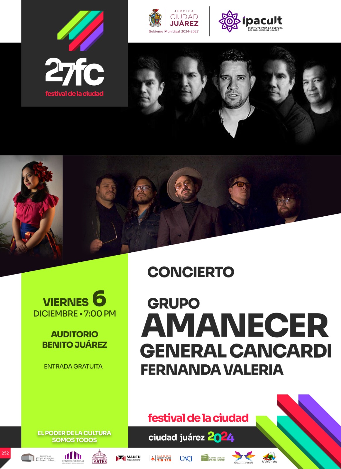 El Festival de la Ciudad, que se celebra del 30 de noviembre al 10 de diciembre en conmemoración del 365 aniversario de la fundación de Ciudad Juárez, incluye una variedad de eventos artísticos y culturales de acceso gratuito.