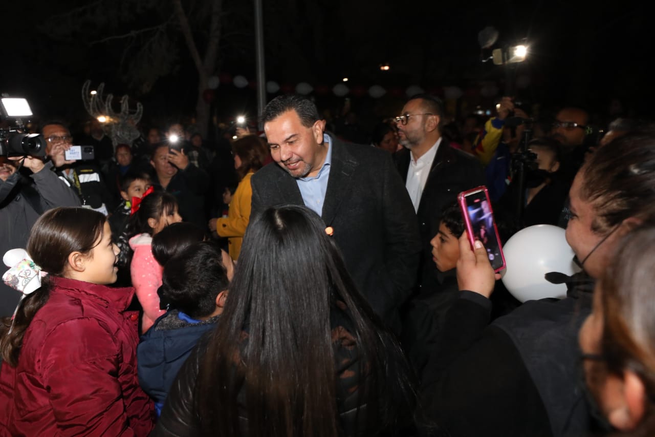 Esta tarde se llevó a cabo el encendido de luces navideñas en el Parque Borunda, evento que fue encabezado por el Presidente Municipal, Cruz Pérez Cuéllar.