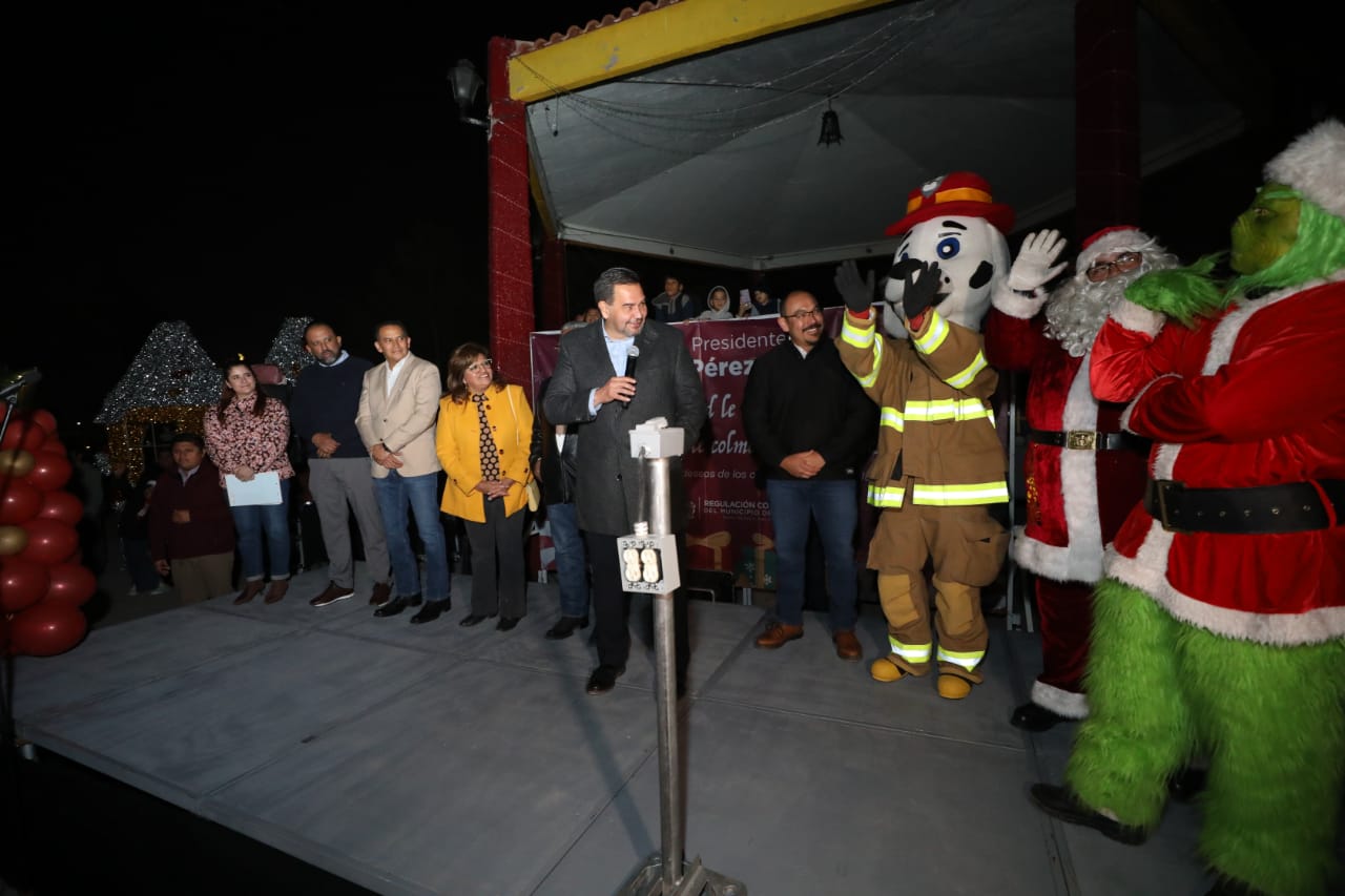 Enciende Presidente Pérez Cuéllar la iluminación navideña en el Parque Borunda