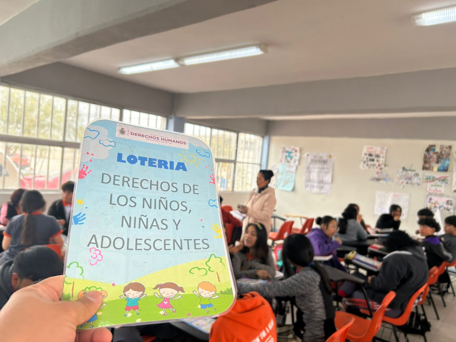 El titular de Derechos Humanos, Santiago González Reyes, informó que se trabajaron con tres grupos de estudiantes utilizando la Lotería de los Derechos Humanos, que es una dinámica educativa diseñada para enseñar y reforzar los conceptos fundamentales de los derechos humanos de manera lúdica y participativa.