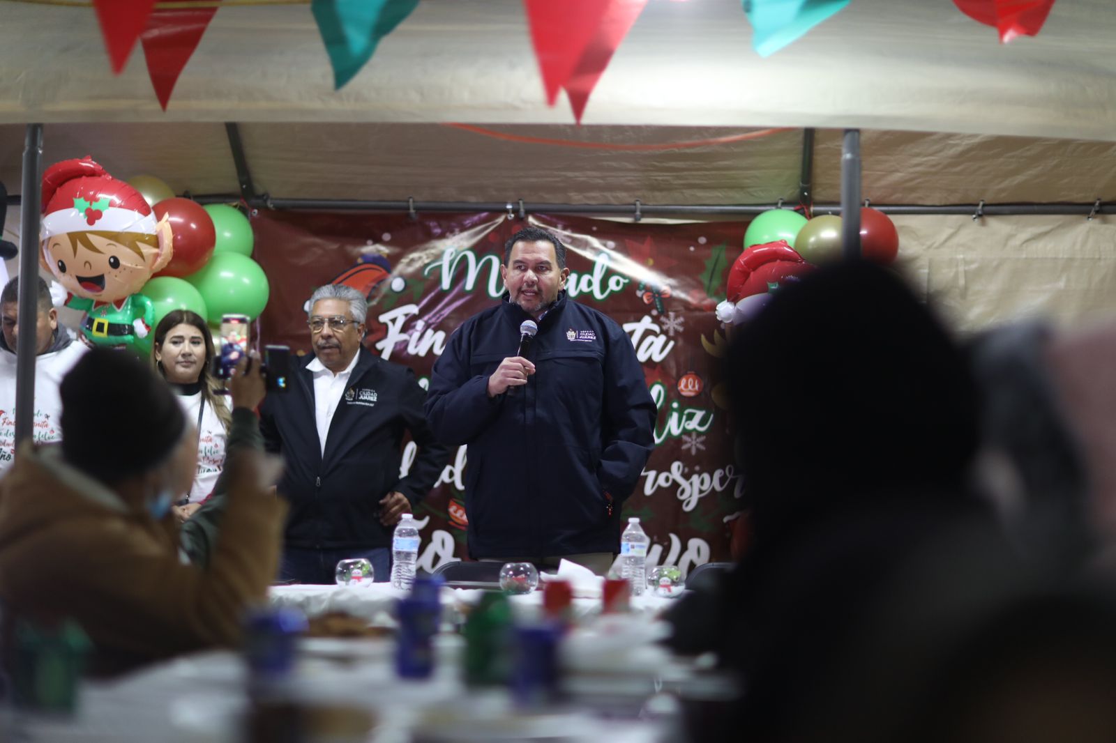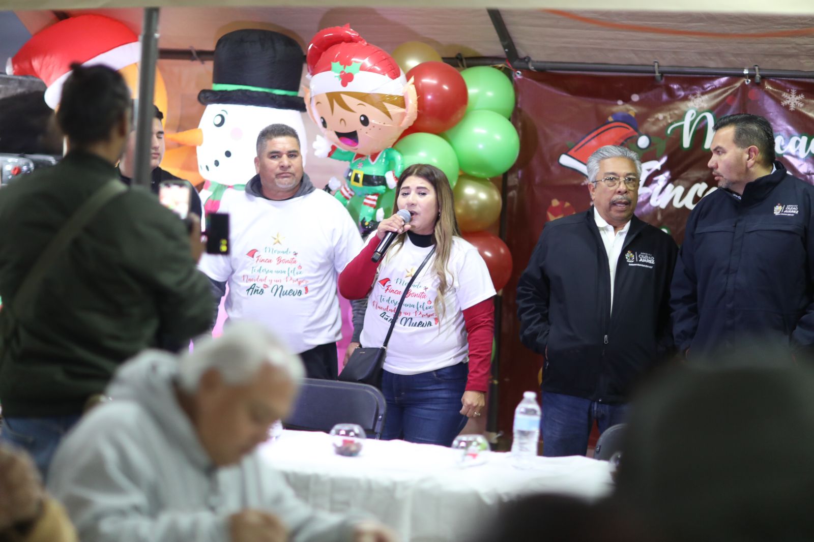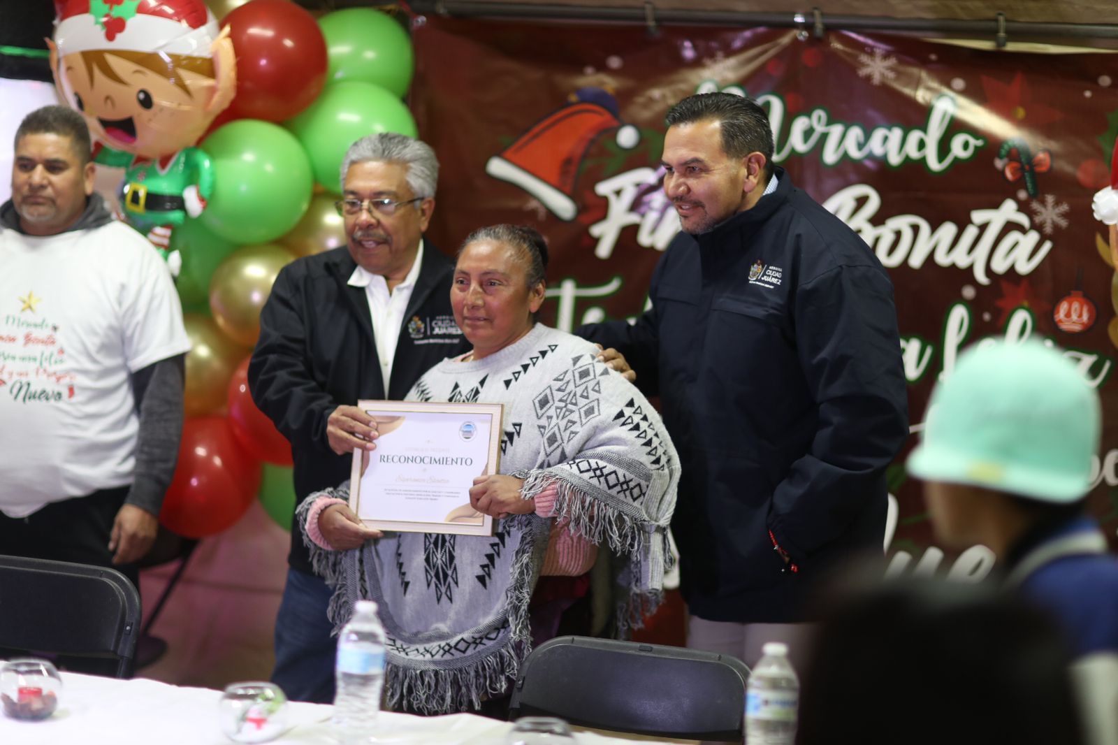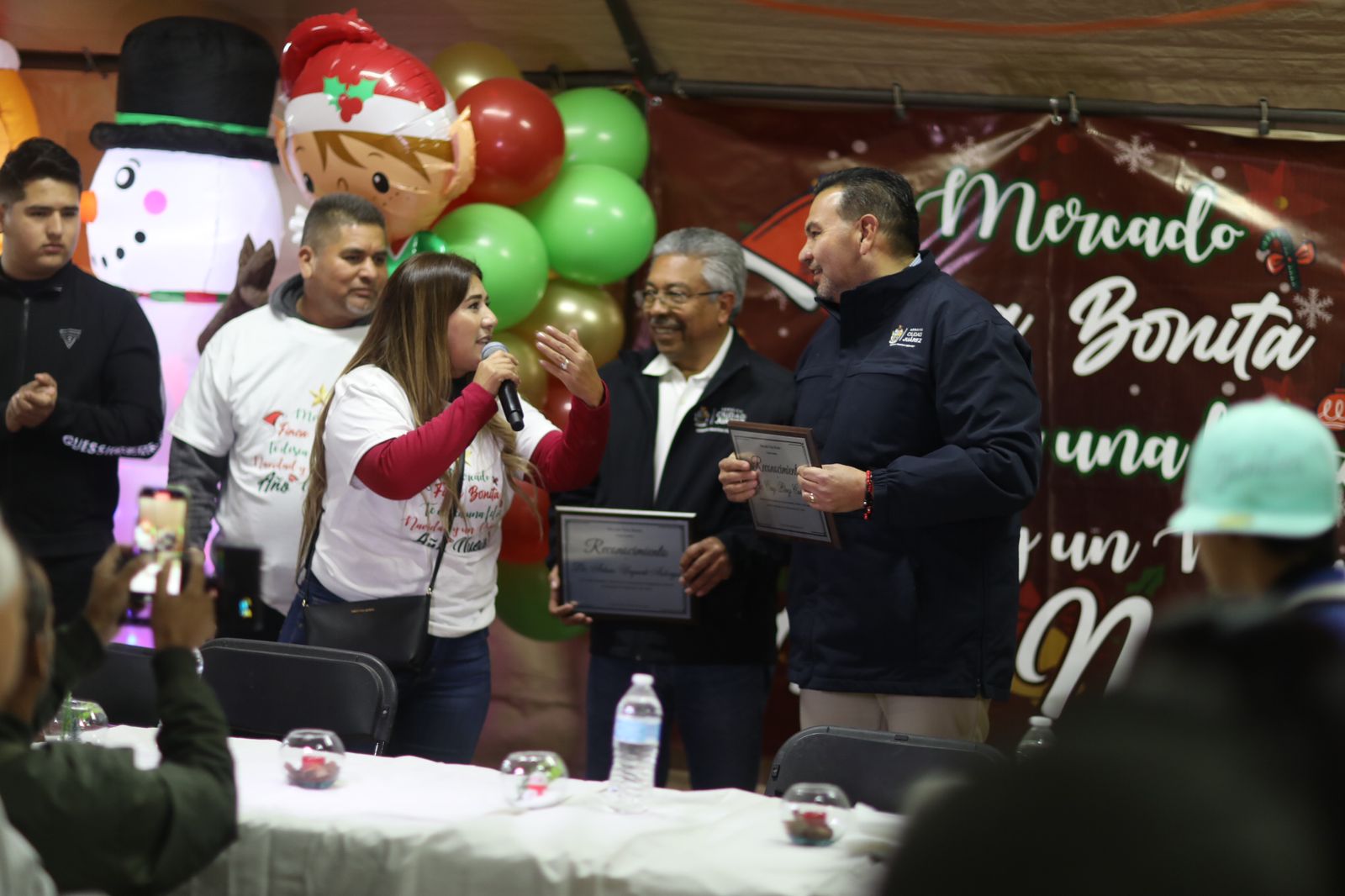 Durante la fiesta navideña, la coordinadora del Mercado Finca Bonita, Ana Zedillo, agradeció al Presidente Pérez Cuéllar por acudir a la celebración y por apoyarlos.