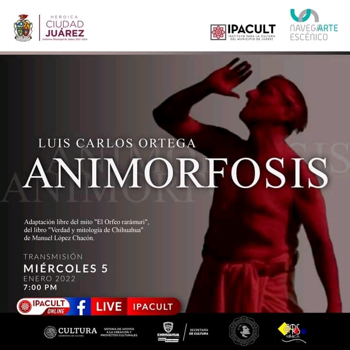 Miércoles 5 de enero de 2022.- El instituto Para la Cultura del Municipio de Juárez (IPACULT) ofrecerá hoy por la noche la primera de sus transmisiones online del programa "NavegArte Escénico" de este año, con la presentación de un sketch de expresión corporal intitulado "Animorfosis".