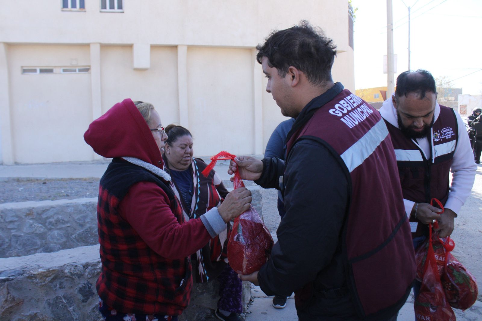 Arecas, Praderas del Sol, Paseo de las Torres, Centro Comunitario Frida Kahlo, colonia San Francisco, Tierra Nueva, La Cañada, Águilas de Zaragoza y colonia Lomas del Valle, fueron los sectores visitados por el personal de Desarrollo Social para entregar a las familias una pierna de puerco de poco más de 3 kilogramos. En total 750 piezas.