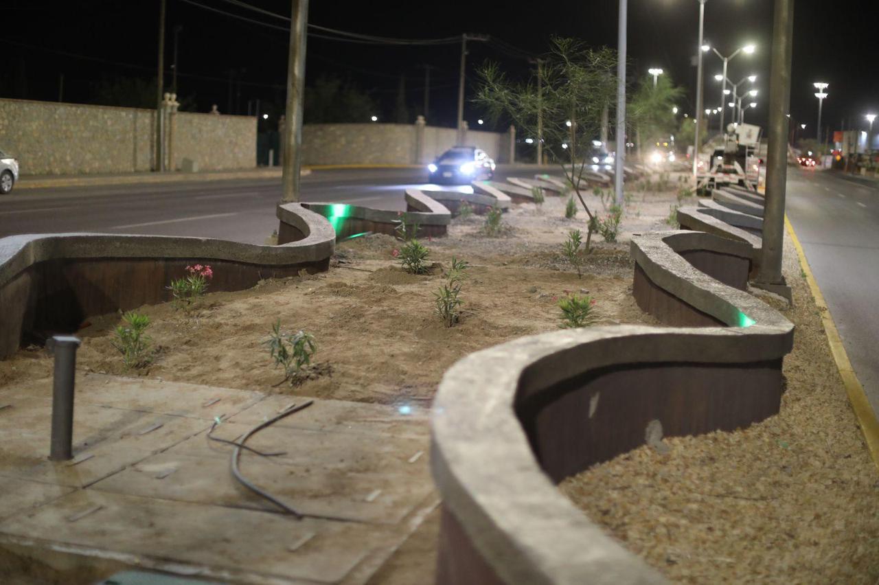 González García dijo que en el camellón Panamericana se llevó a cabo la mejora del mismo desde el Aeropuerto Internacional Abraham González a la Glorieta del Kilómetro 20, sector que es un punto simbólico para los fronterizos al haberse construido una estructura que representa una duna del desierto.