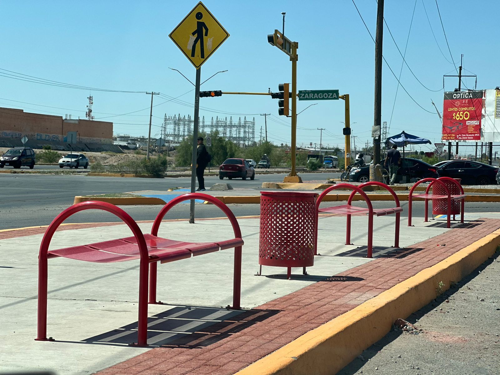 El camellón del Eje Vial Juan Gabriel se rehabilitó desde la avenida Sanders al boulevard Zaragoza, atendiendo cinco kilómetros con la fabricación de banquetas en el centro y laterales, guarniciones, limpieza general, la colocación de grava decorativa, así como la instalación y la rehabilitación del mobiliario urbano como bancas y cestos para basura.