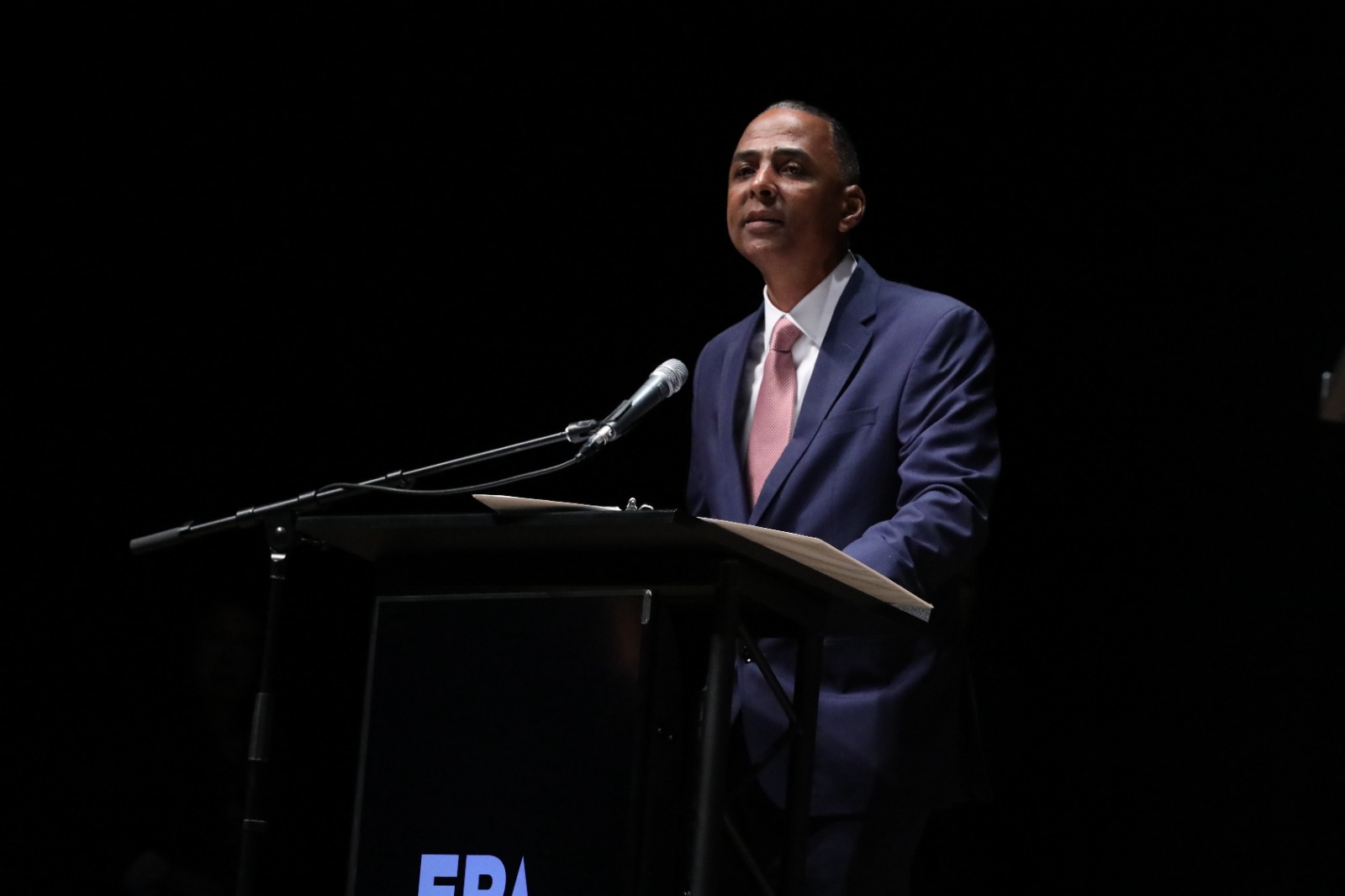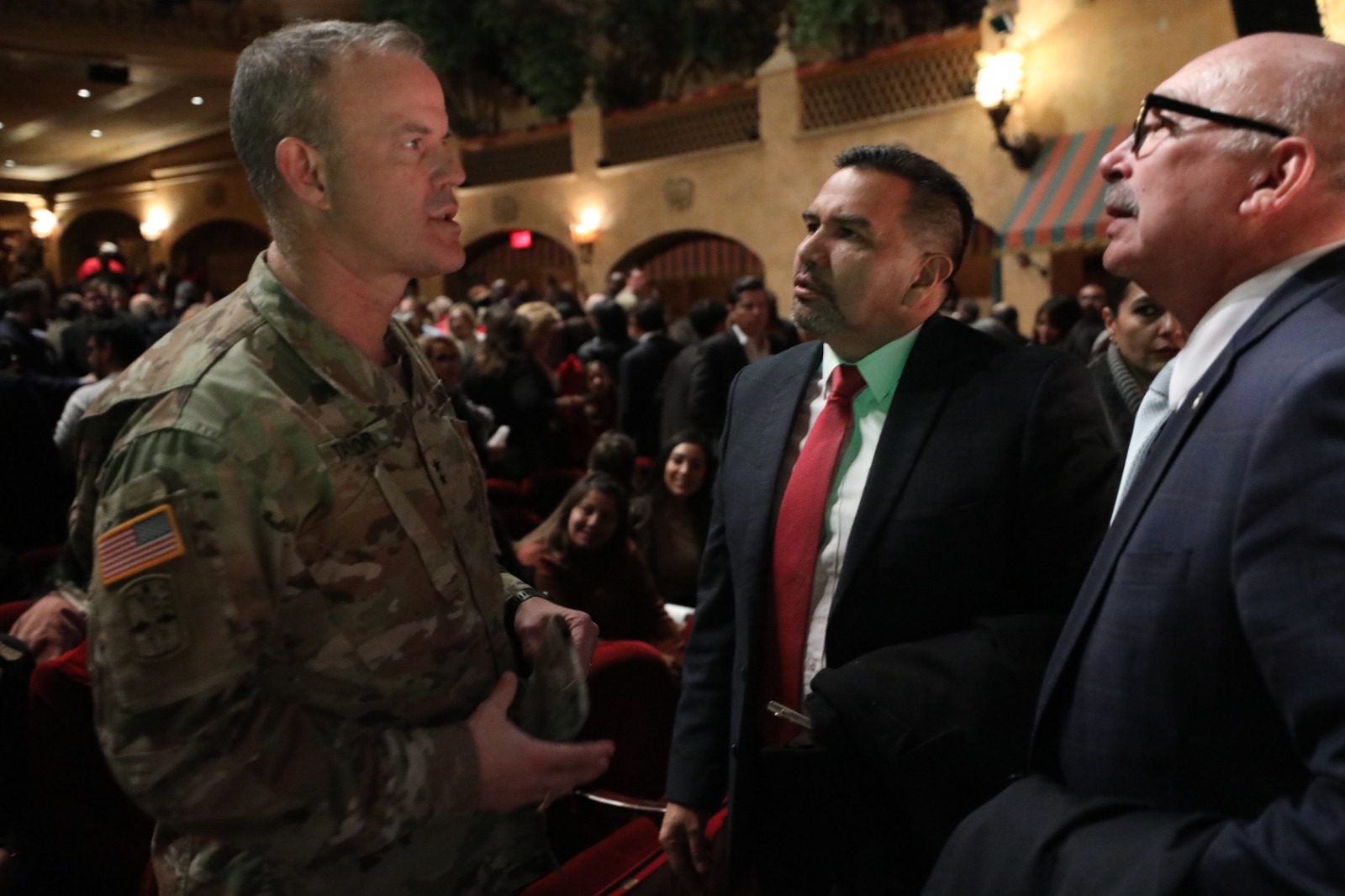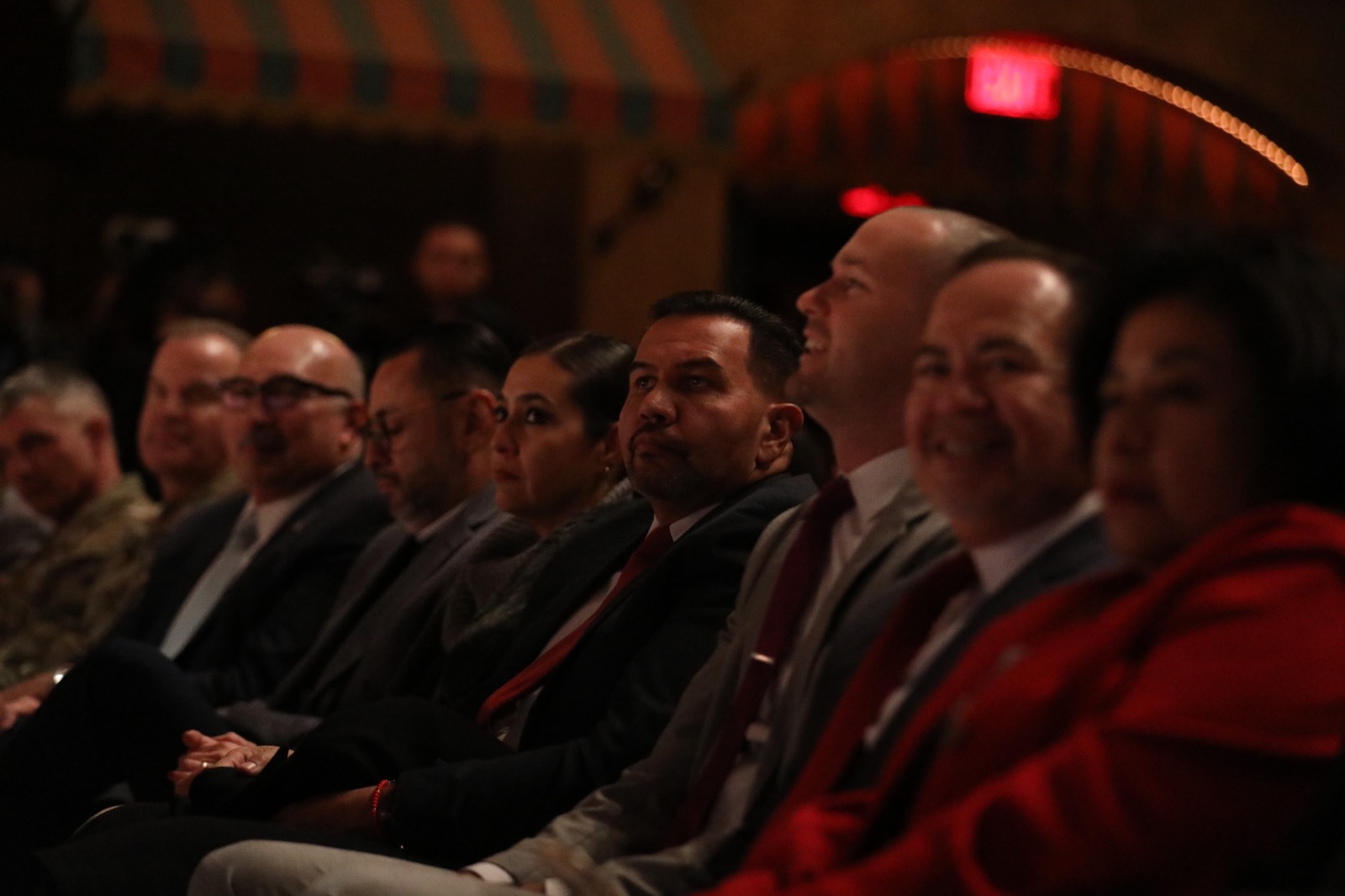 El evento, denominado "Ceremonia de Liderazgo de la Ciudad", se llevó a cabo en el Teatro Plaza, ubicado en el centro de la ciudad vecina.