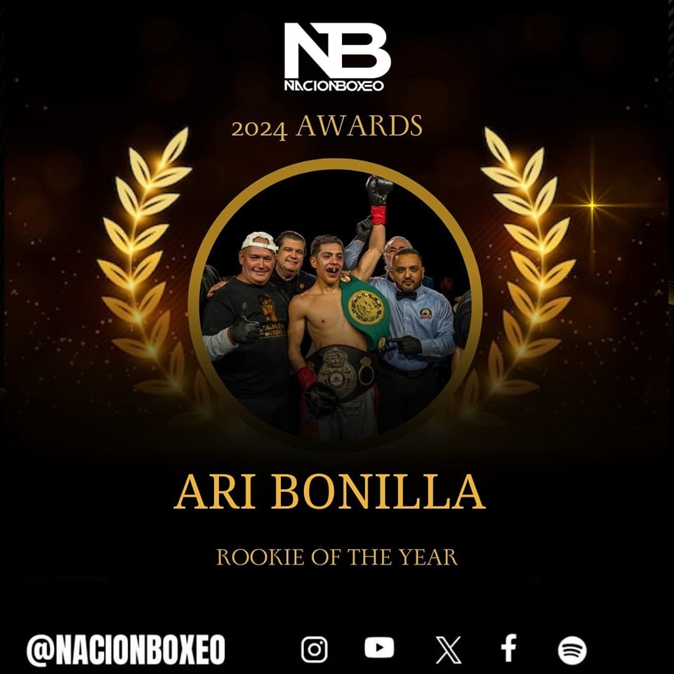 En la página de oficial de Nación Boxeo se puede leer el siguiente texto: “Nación Boxeo reconoce a Ari Bonilla como Novato del Año 2024”.