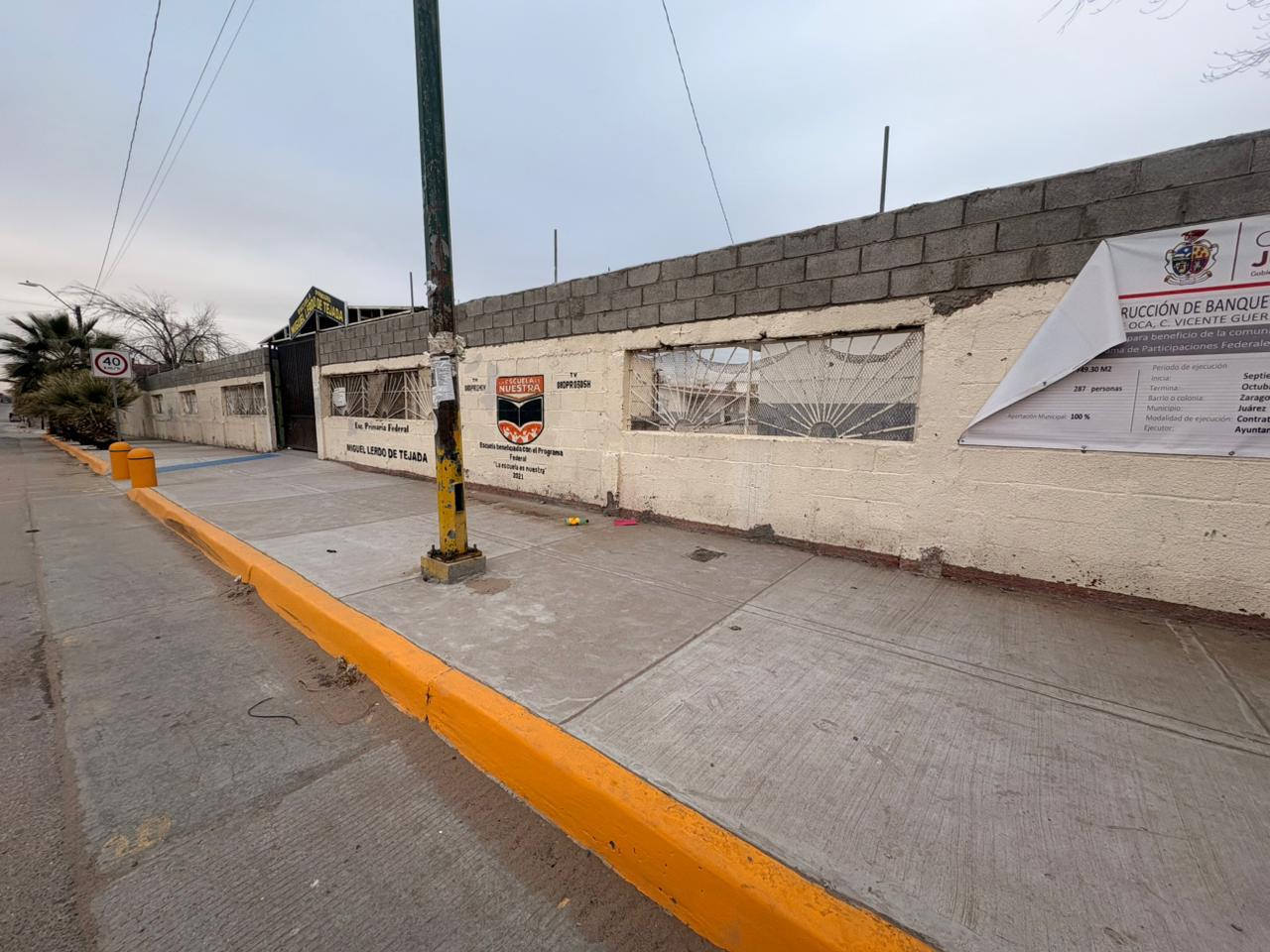 Construye Obras Públicas la banqueta perimetral en la Primaria Miguel Lerdo de Tejada
