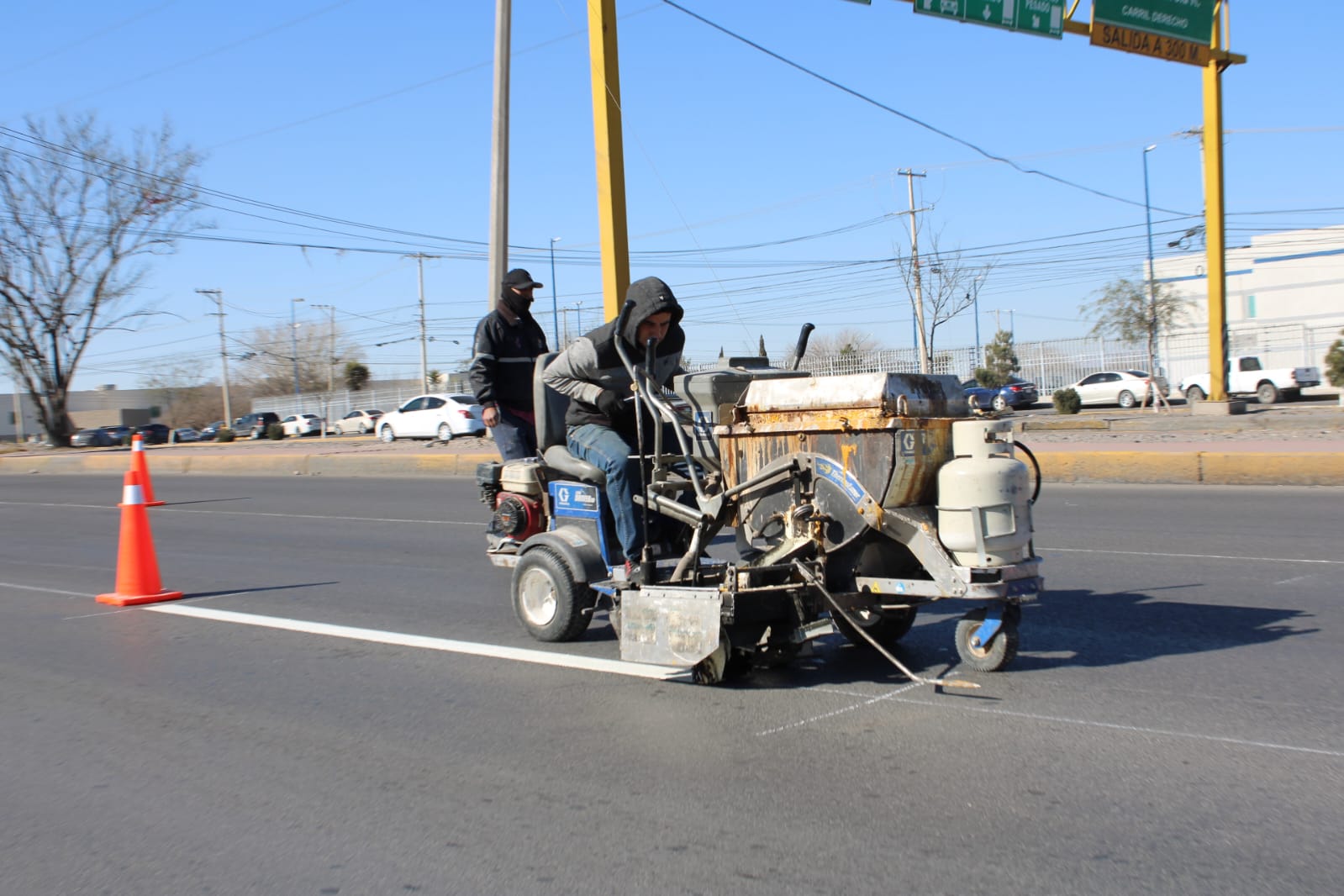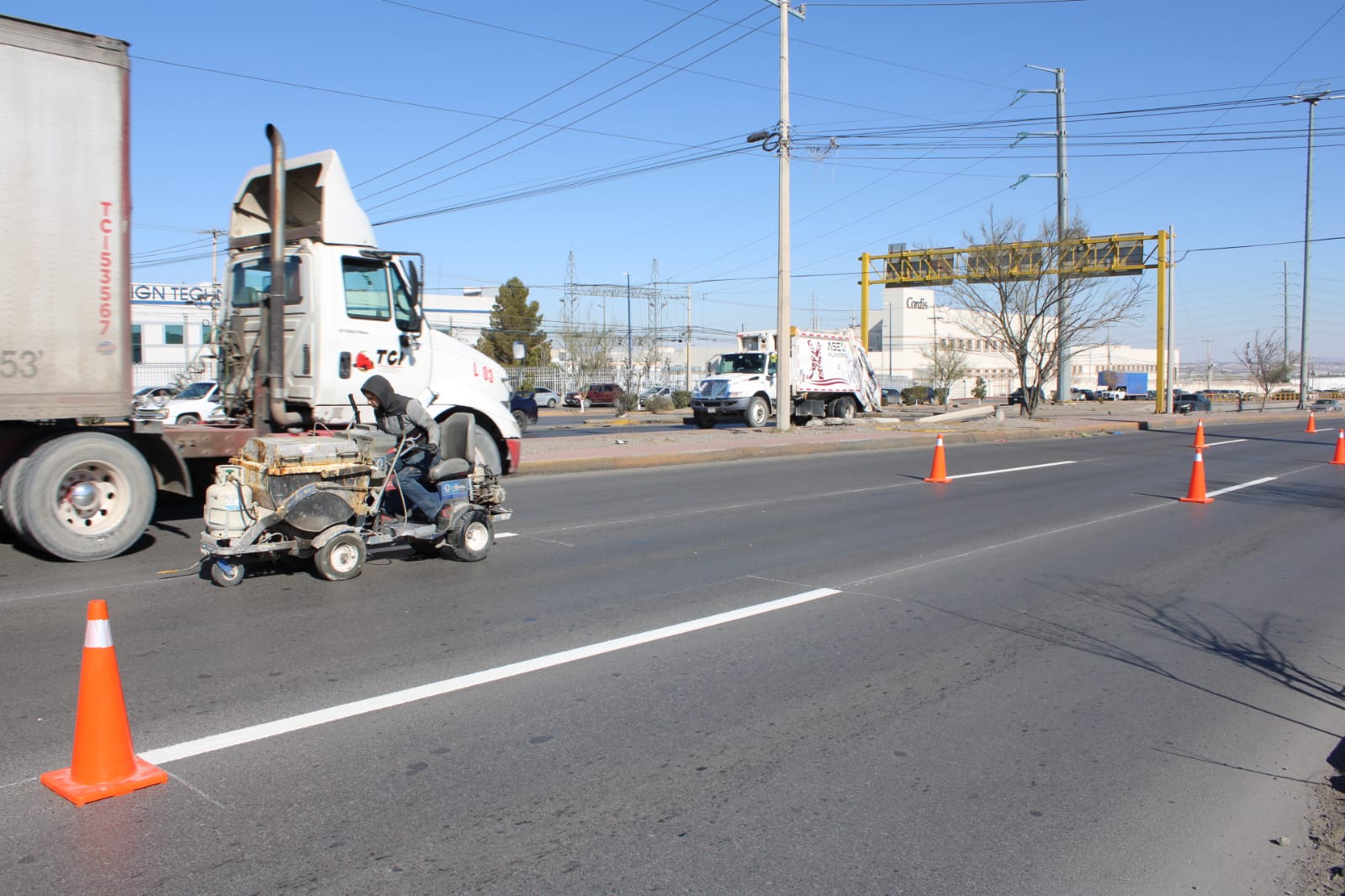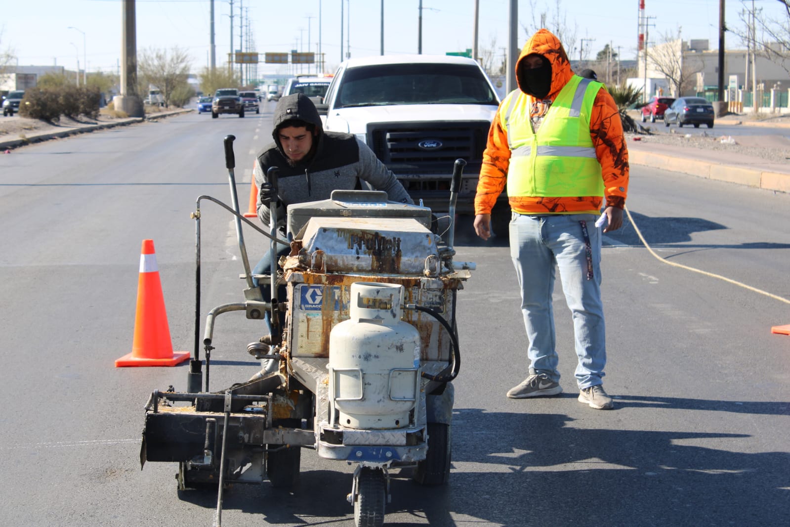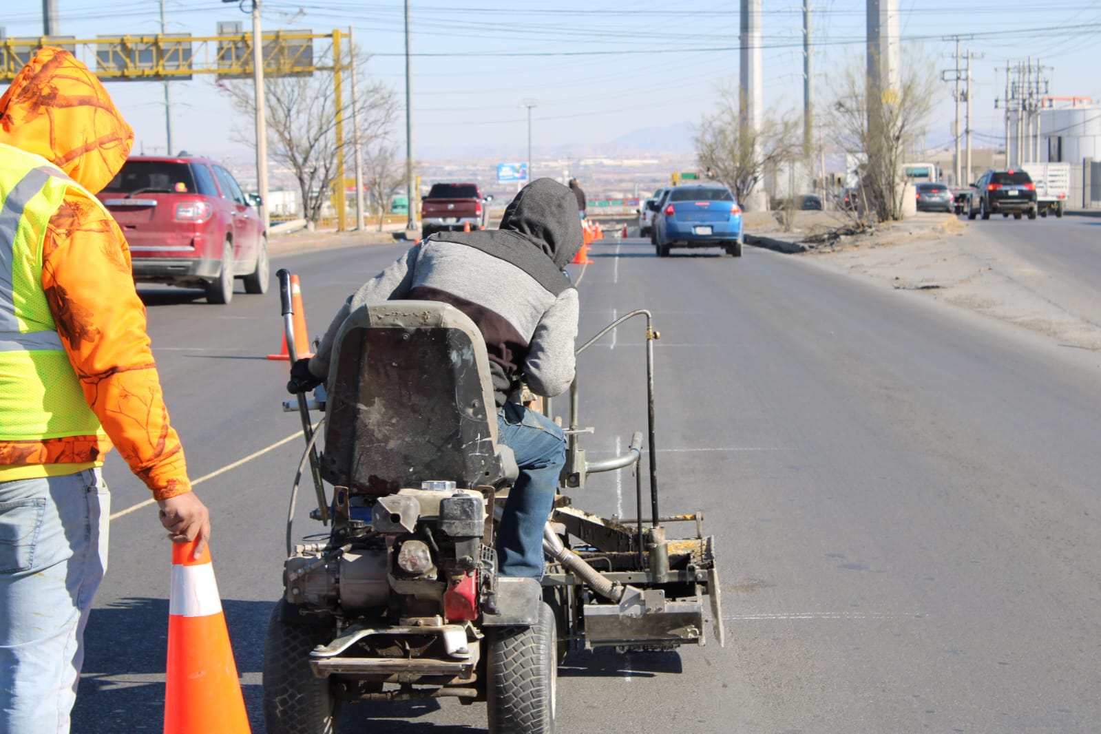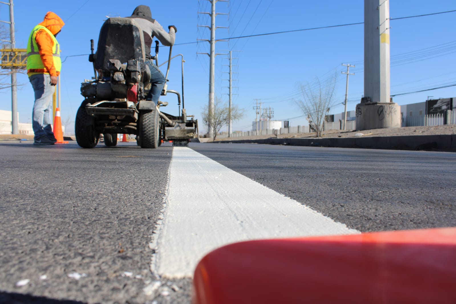 Personal adscrito al área de Control de Tráfico de la Coordinación General de Seguridad Vial, llevó a cabo la realización de trabajos de aplicación de pintura para delimitar los carriles de circulación vehicular sobre el bulevar Independencia, en el tramo que va desde las inmediaciones de la avenida Santiago Blancas, hasta la carretera Juárez Porvenir.