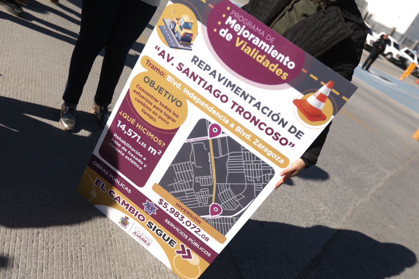 Como parte del programa de Mejoramiento de Vialidades, el Presidente Municipal, Cruz Pérez Cuéllar, entregó este día la obra de repavimentación en la avenida Santiago Troncoso, en el tramo de bulevar Independencia a bulevar Zaragoza.