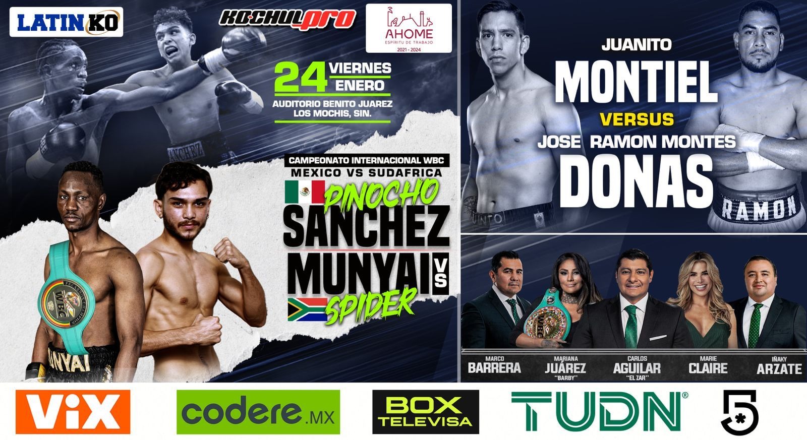 La función “México vs Sudáfrica” será transmitida por Box Televisa hoy viernes 24 de enero desde Los Mochis, Sinaloa, desde el auditorio Benito Juárez García, a las 7:00 de la tarde.