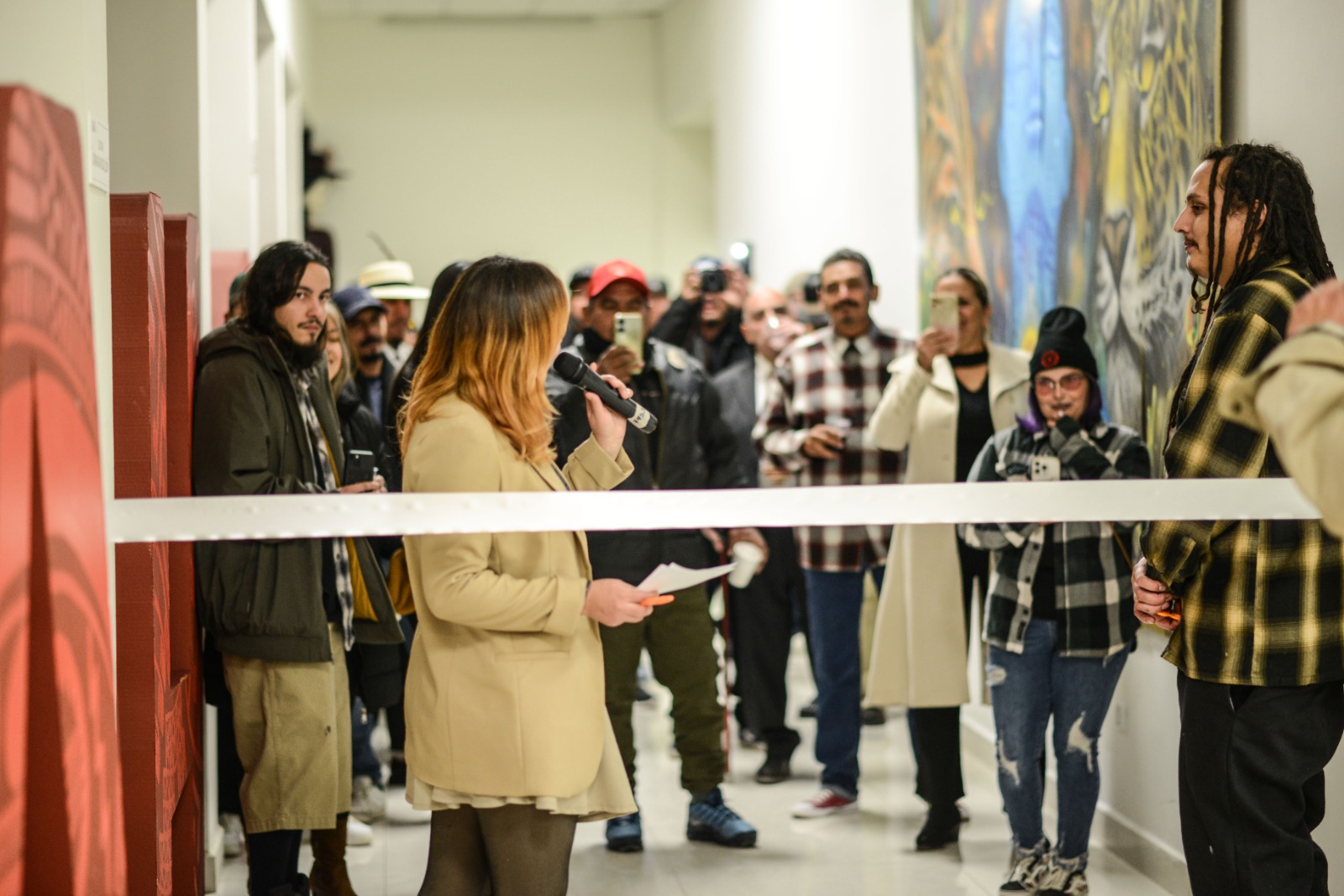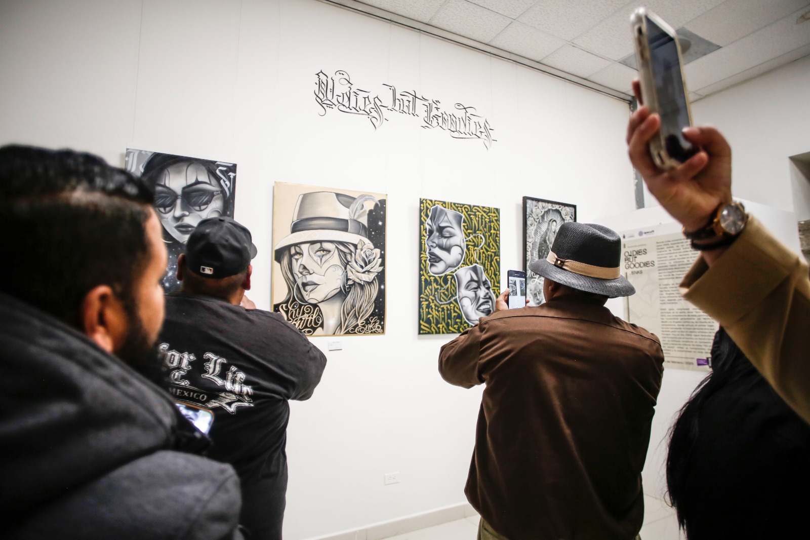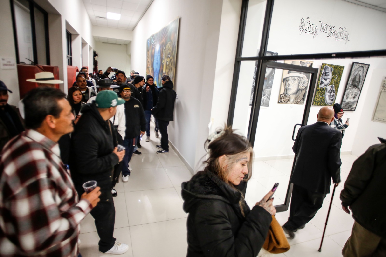 Con murales en ciudades de todo el mundo, su trabajo refleja una rica fusión cultural y un mensaje de orgullo fronterizo que resonó en cada rincón de la sala.