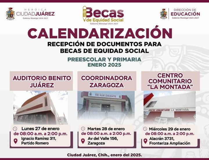 Mañana se llevará a cabo la recepción de documentos para las becas de equidad social que entrega el Municipio a los alumnos de preescolar y primaria, trámite que será en las oficinas de la Coordinación de Atención Ciudadana del Suroriente, ubicada en avenida del Valle, en la colonia Zaragoza.