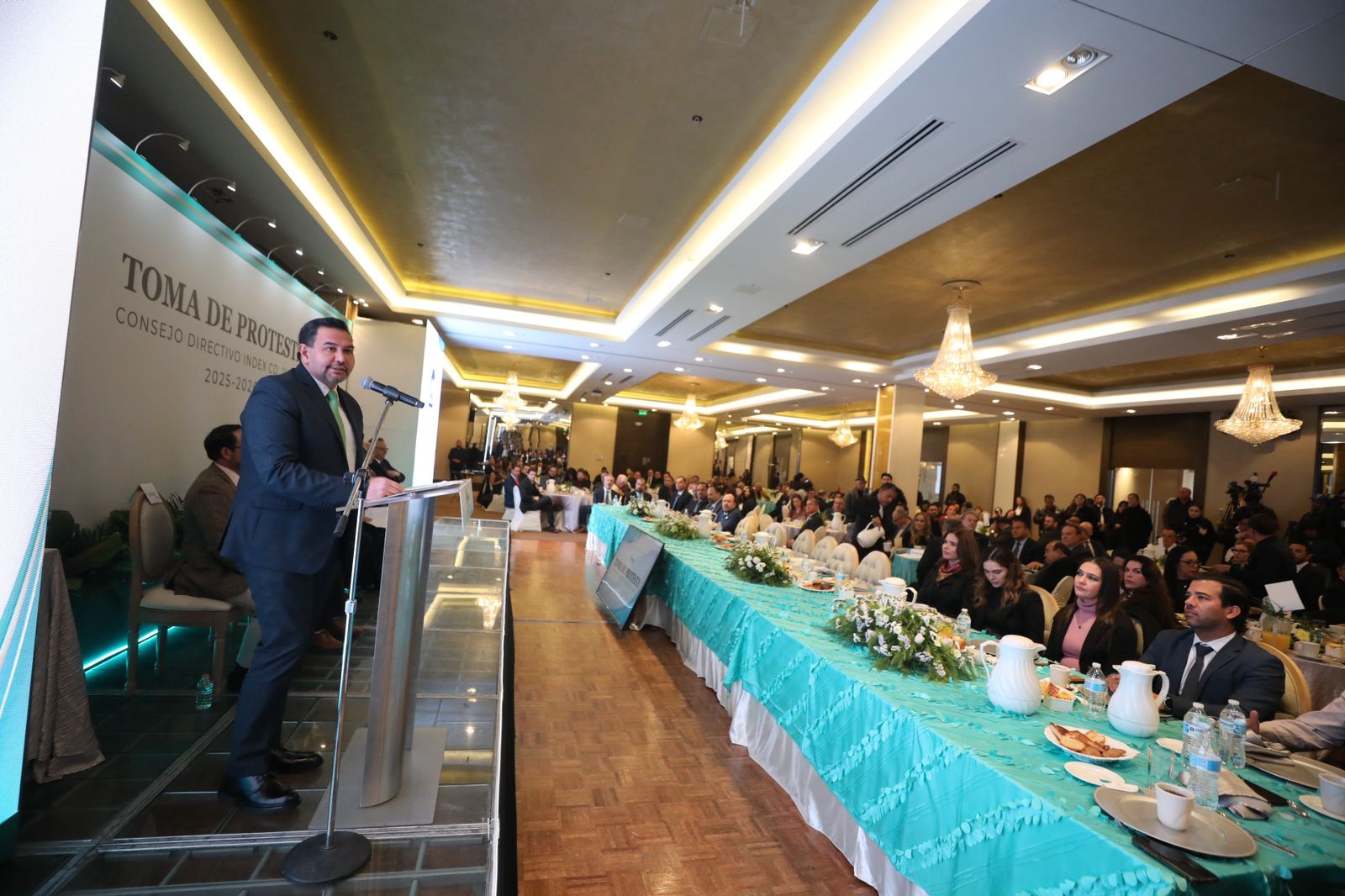 En el marco de la ceremonia de toma de protesta al nuevo Consejo Directivo de Index Juárez para el ciclo 2025-2026, el Presidente Municipal, Cruz Pérez Cuéllar reiteró el apoyo de su administración para fortalecer a este pilar de la economía que es la industria manufacturera de exportación.