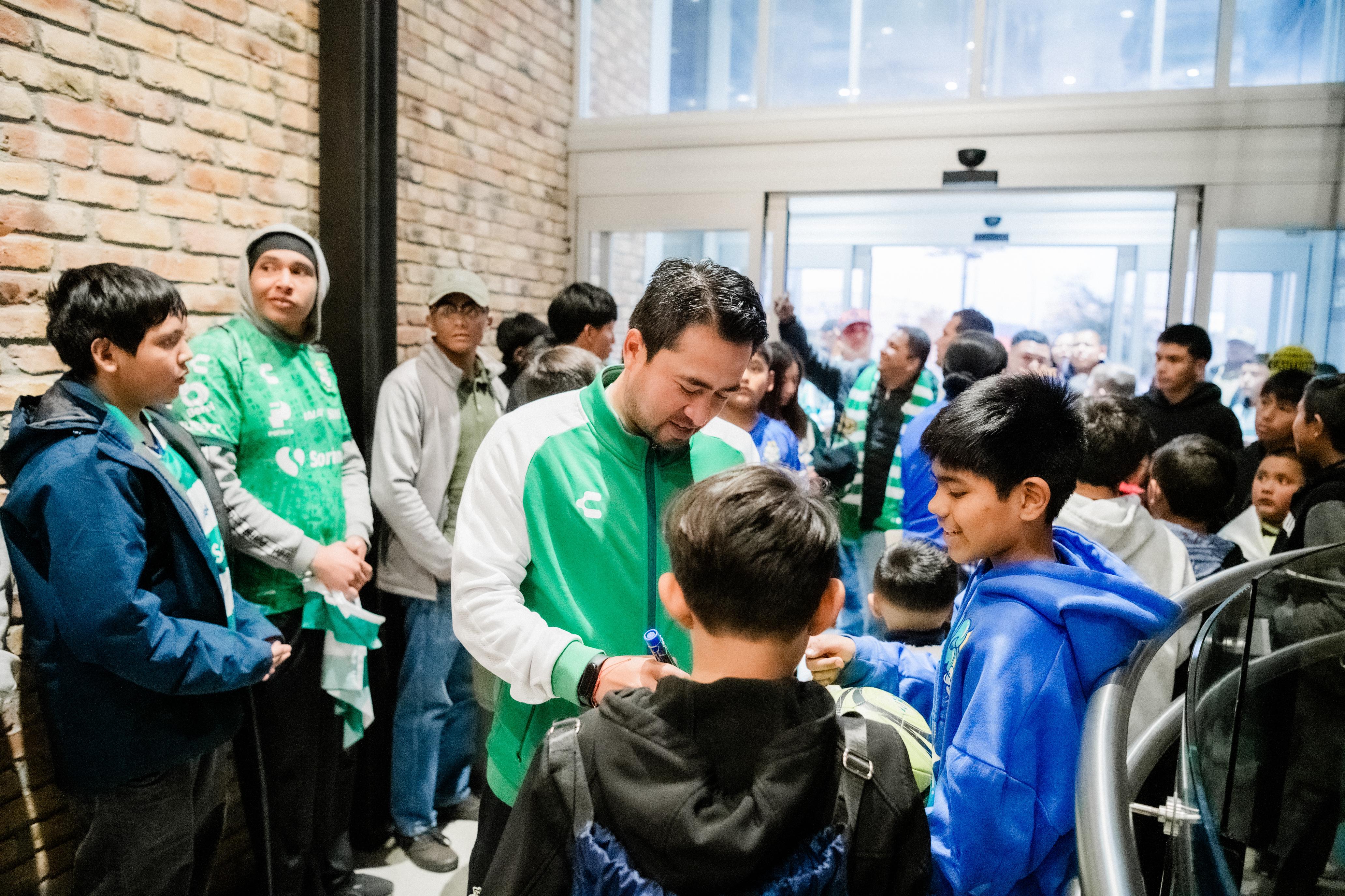Niñas y niños, acompañados de su familia, cumplieron el sueño de conocer a sus ídolos en una convivencia con jugadores del Club Santos Laguna que hizo posible el Sistema para el Desarrollo Integral de la Familia del Municipio de Juárez (DIF).