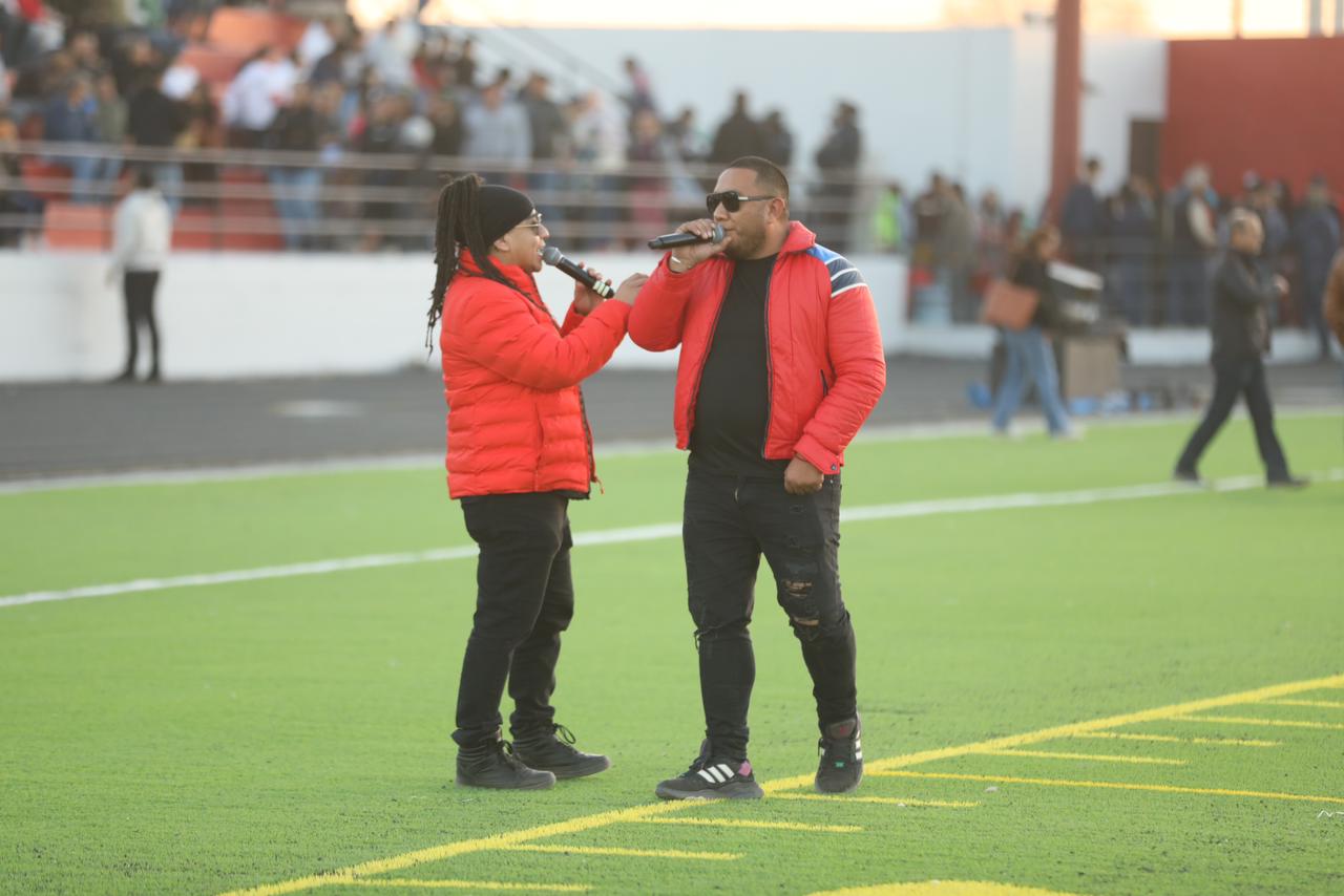 Este lugar cuenta con cancha de pasto sintético para futbol americano y sutbol soccer, así como pista de atletismo con 6 carriles, pista de salto de longitud y área de lanzamiento.