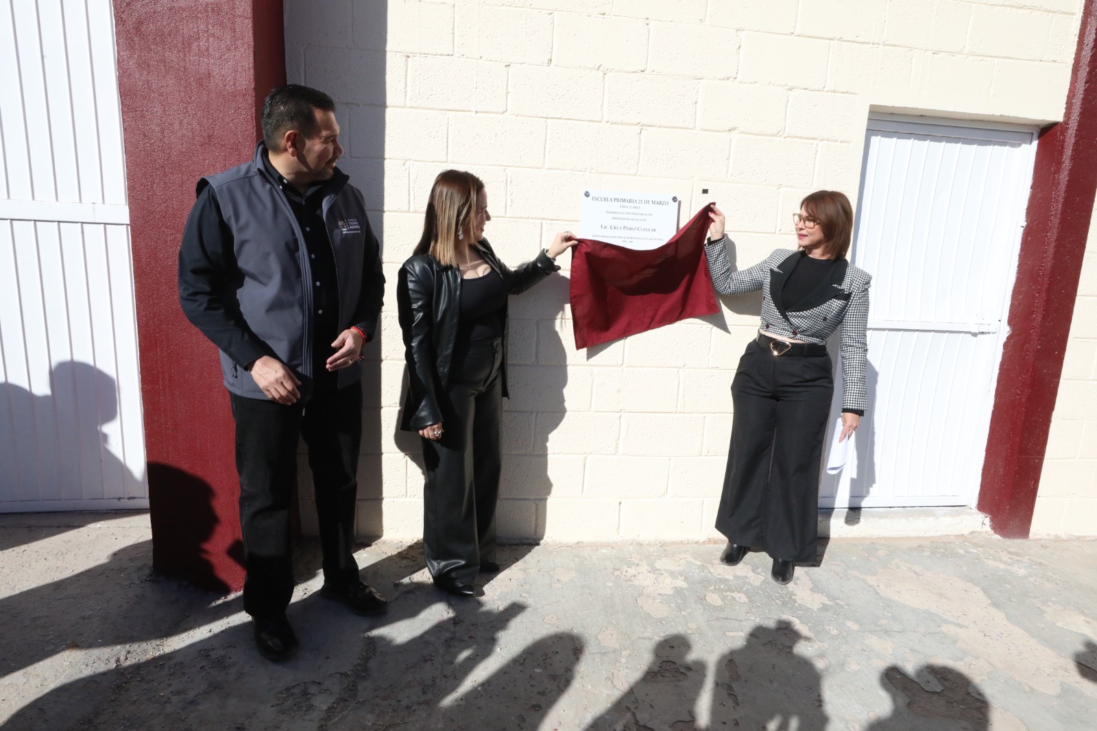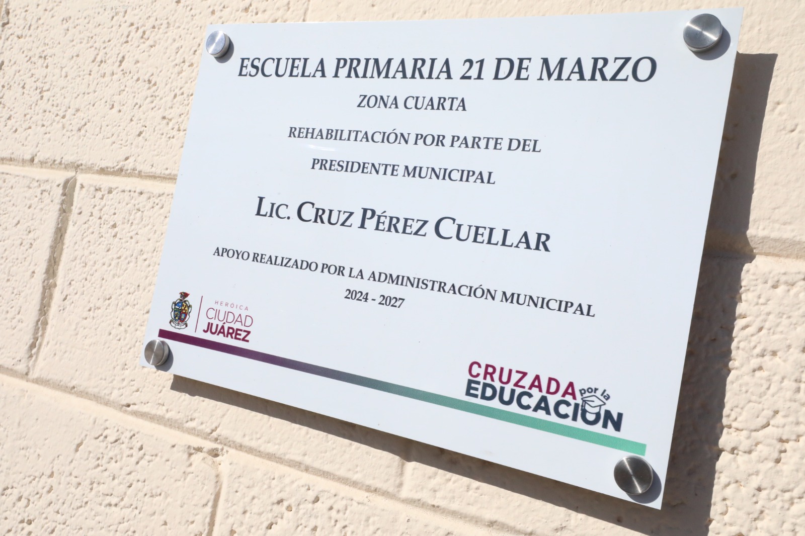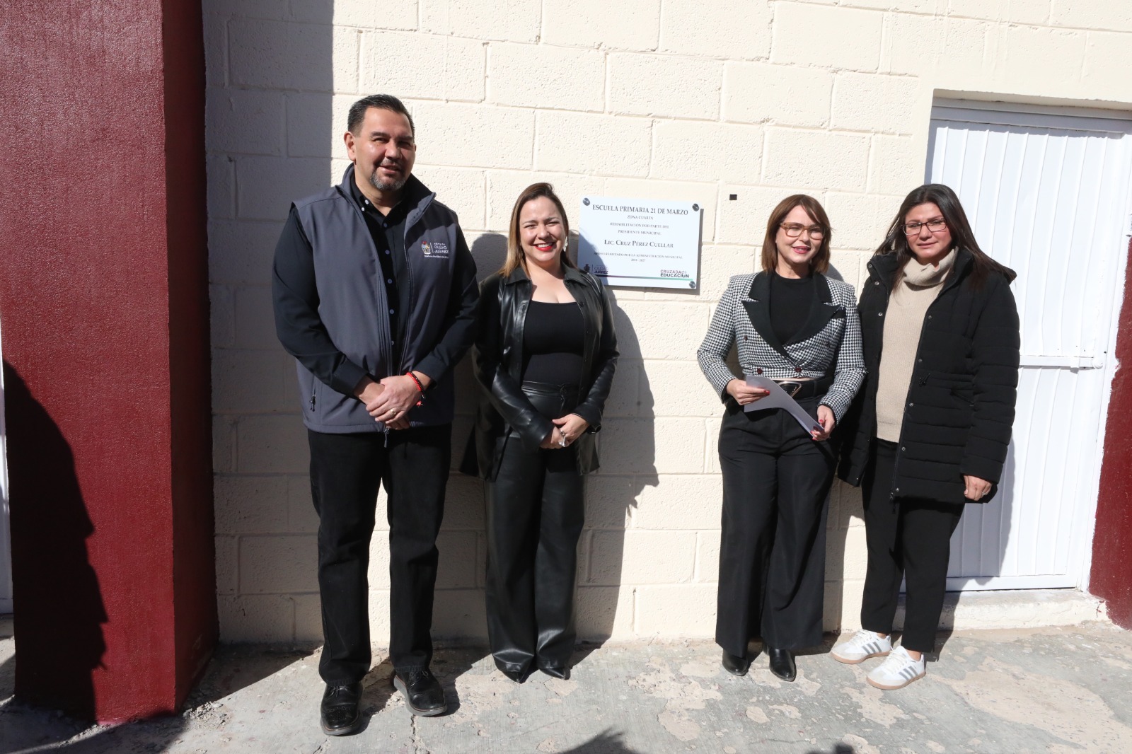 Como parte de las acciones que se realizan dentro del programa de Rehabilitación a Escuelas de Educación Pública, este día el Presidente Municipal, Cruz Pérez Cuéllar, entregó los trabajos de mejoras en la Escuela Primaria 21 de Marzo, ubicada en la colonia Álamos de San Lorenzo.