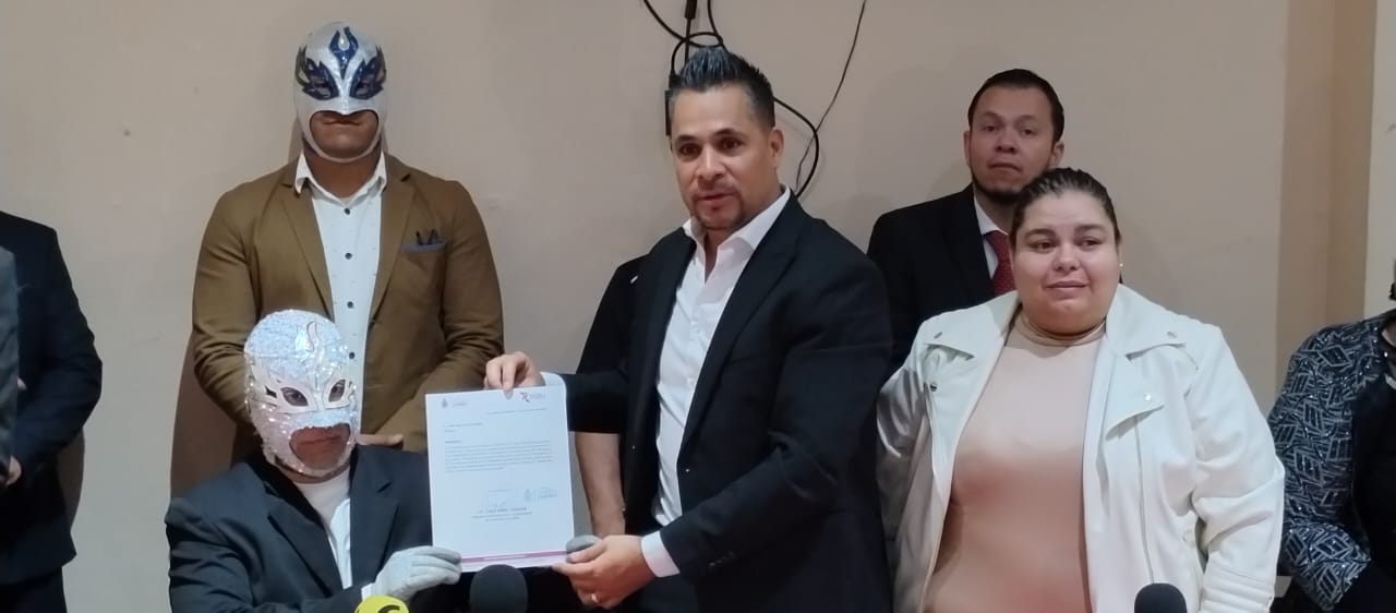 El director general del Instituto Municipal del Deporte y Cultura Física de Juárez, Juan Carlos Escalante, entregó el documento al luchador durante una conferencia de prensa en la cual también estuvo la coordinadora de Desarrollo Deportivo, Saraí De Los Santos.