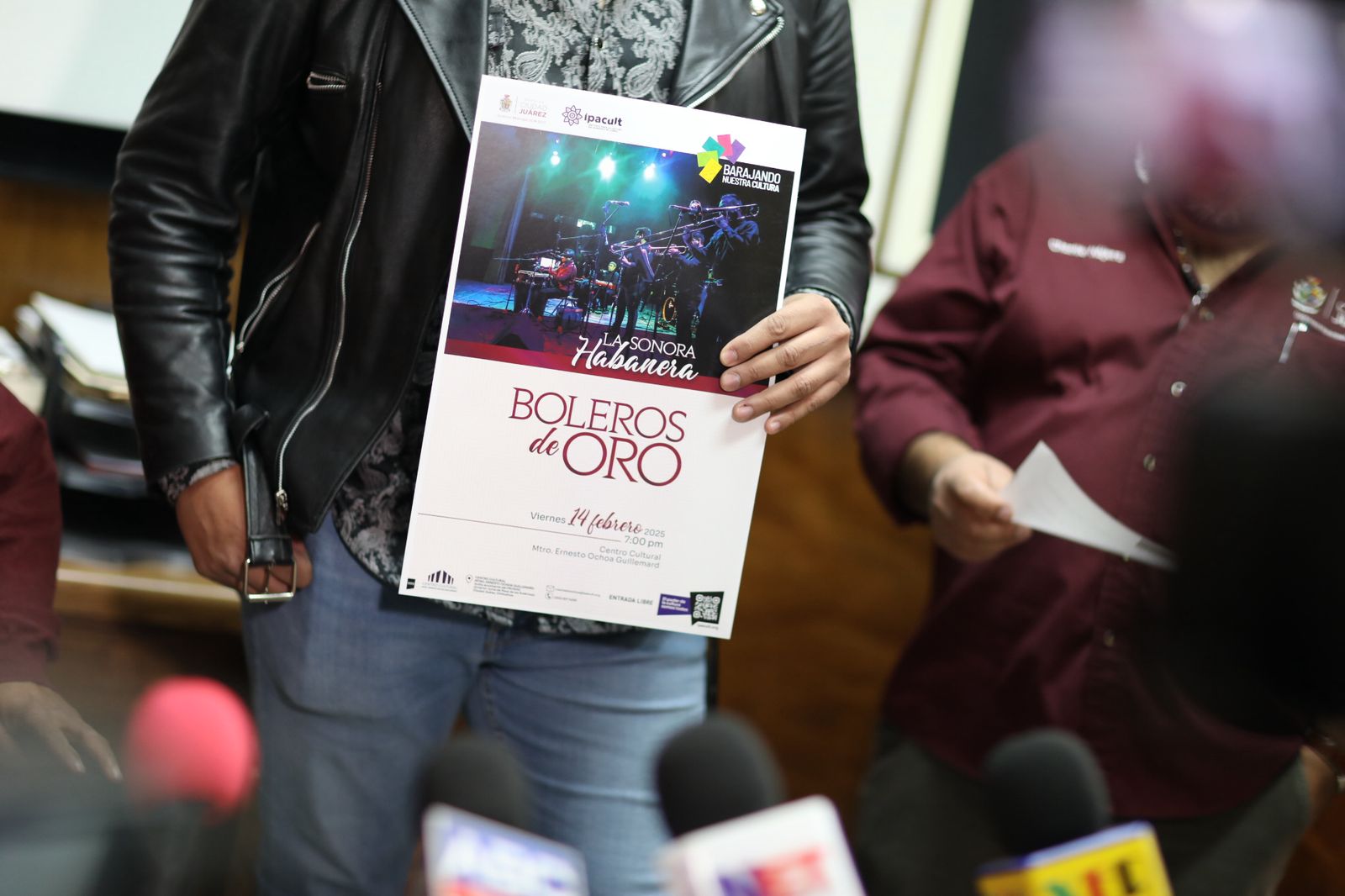 El Instituto para la Cultura del Municipio de Juárez (IPACULT) anunció en rueda de prensa el concierto “Boleros de Oro”, evento que se llevará a cabo este 14 de febrero a las 7:00 de la tarde en el Centro Cultural Ernesto Ochoa Guillemard como parte del programa “Barajando nuestra cultura”.