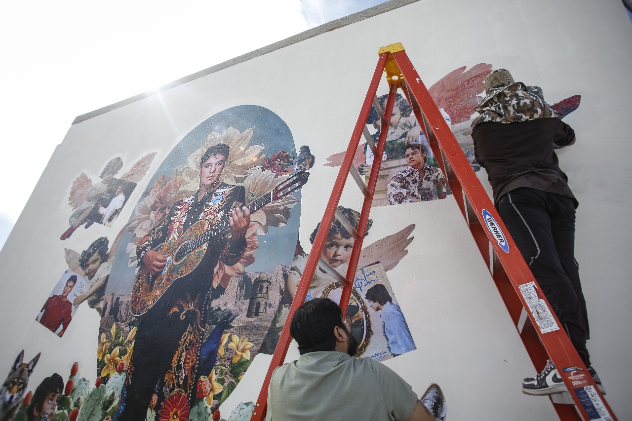 La obra, caracterizada por su estilo vibrante y simbólico, aborda temas como la migración, la identidad fronteriza y la conexión entre el pasado y el presente en torno a la figura del ídolo de Ciudad Juárez, Juan Gabriel.