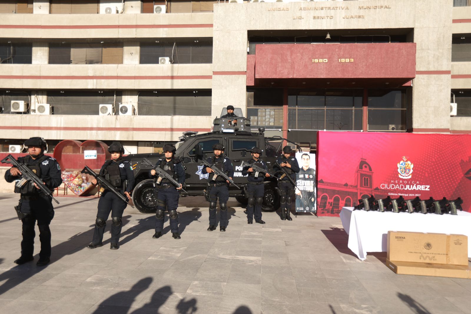 Con inversiones de esta magnitud, la administración municipal refuerza su compromiso de contar con una policía mejor equipada y capacitada, garantizando con ello la seguridad y el bienestar de la comunidad juarense, agregó.