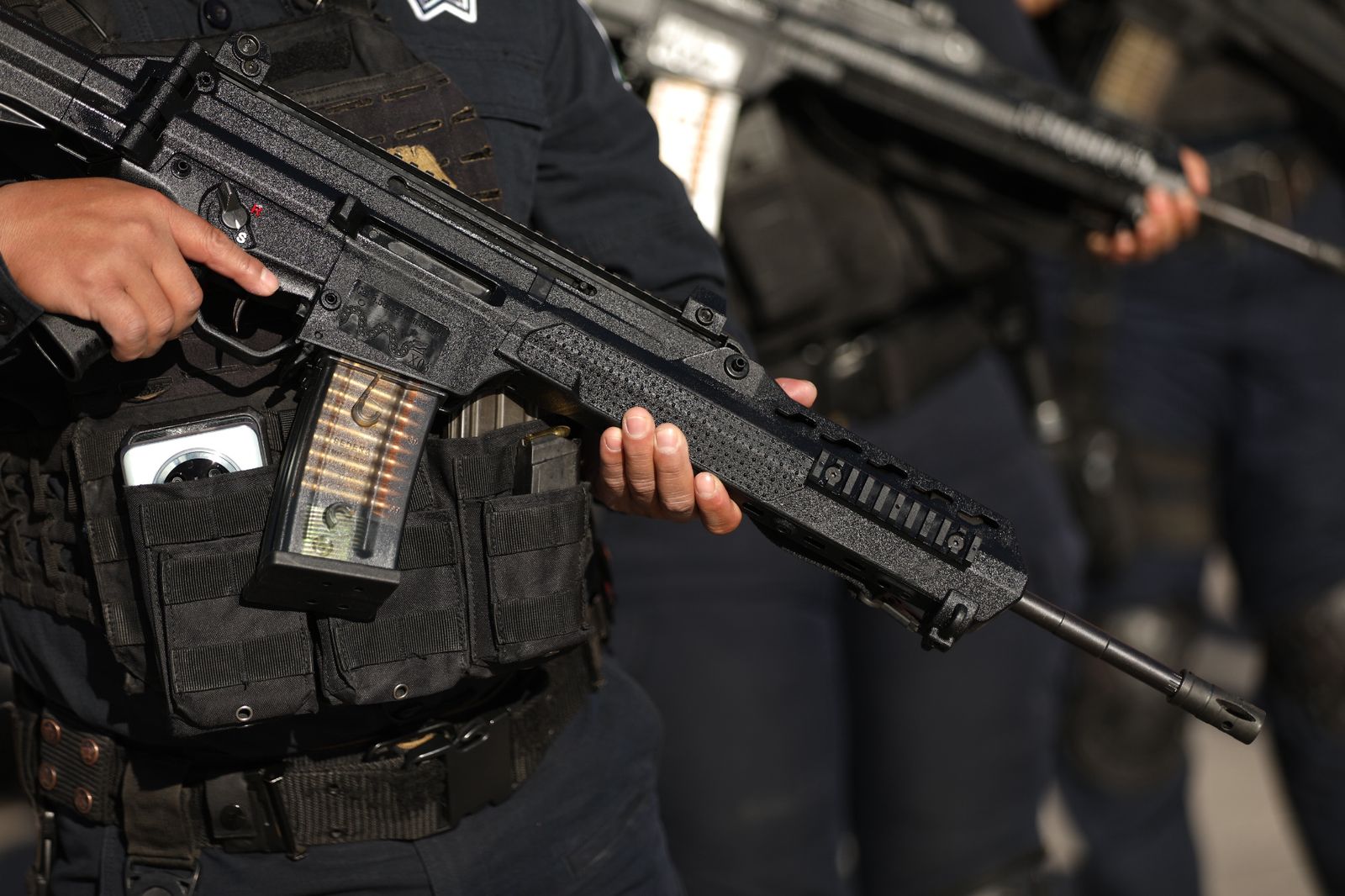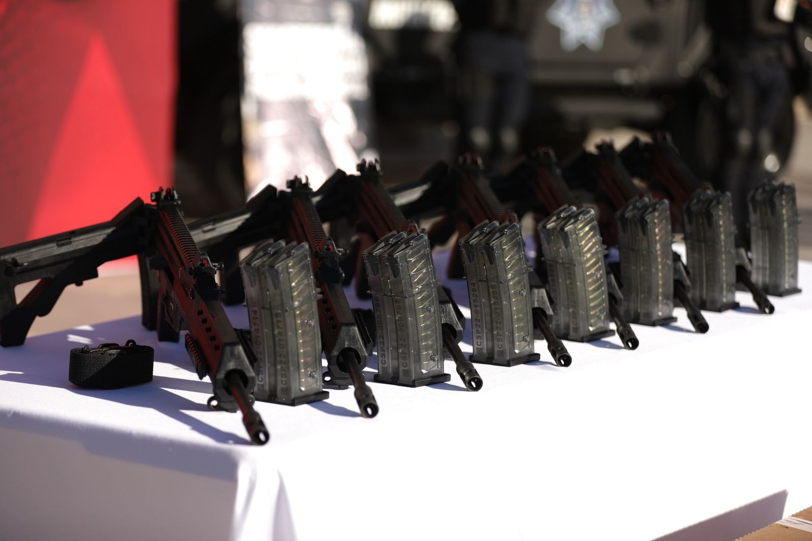 El equipamiento consta de 1,445 armas largas tipo fusil semiautomático calibre 5.56x44, las cuales fueron gestionadas por el Presidente Municipal, Cruz Pérez Cuéllar en el año 2023. Debido a los lineamientos y procesos legales para la adquisición de armamento por parte de los municipios, la entrega de este equipo se prolongó hasta la fecha.