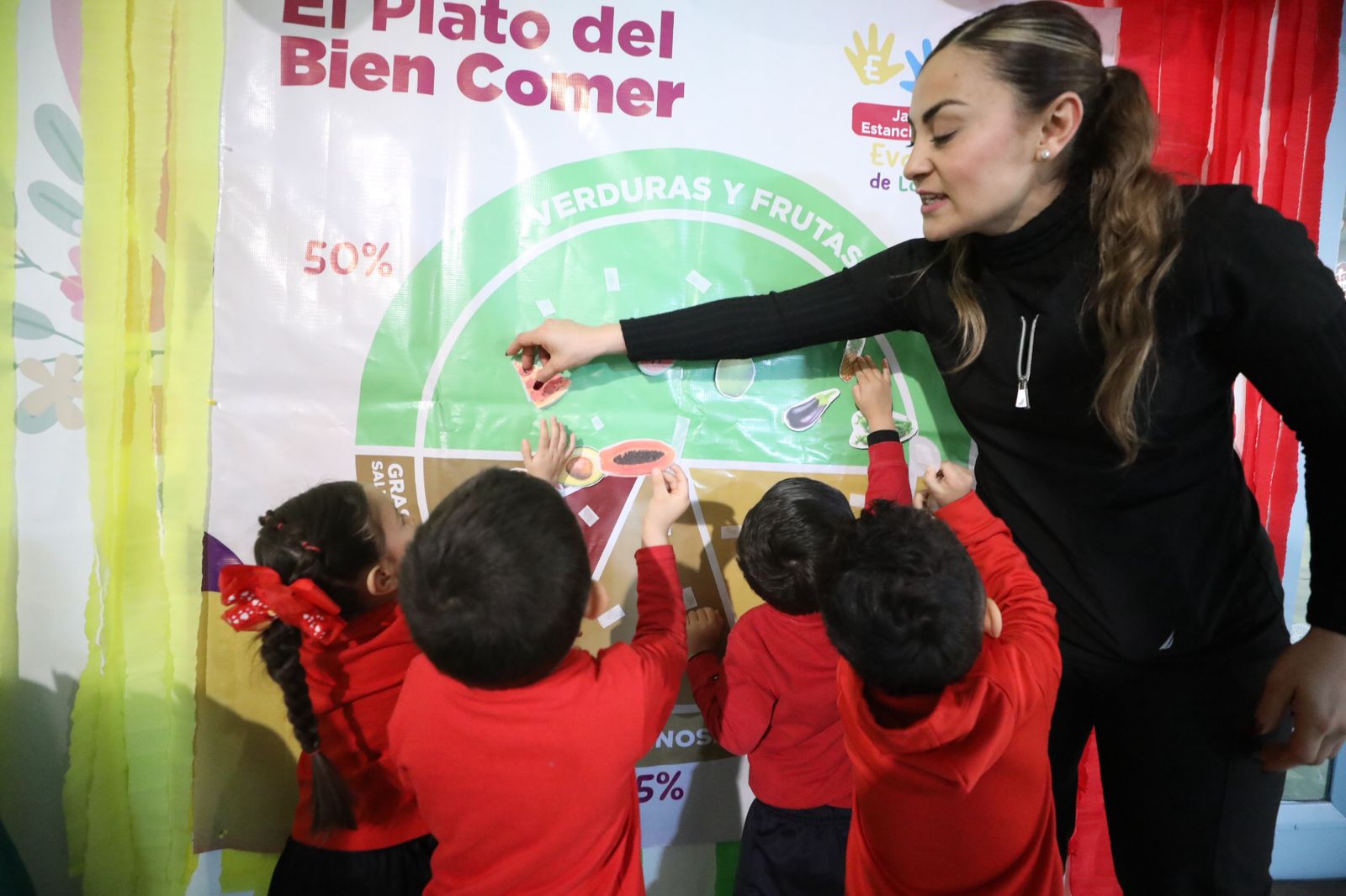 En el módulo de alimentación, las y los niños identificaron alimentos saludables y no saludables utilizando el plato del buen comer, guiados por la nutrióloga Nancy Ortega.