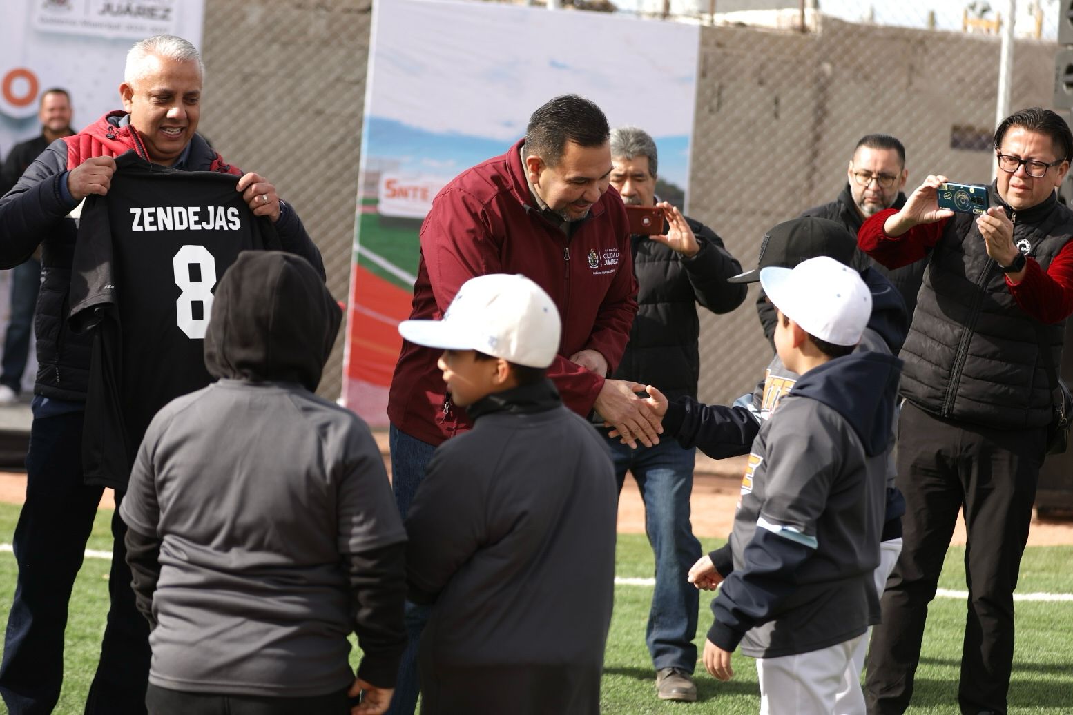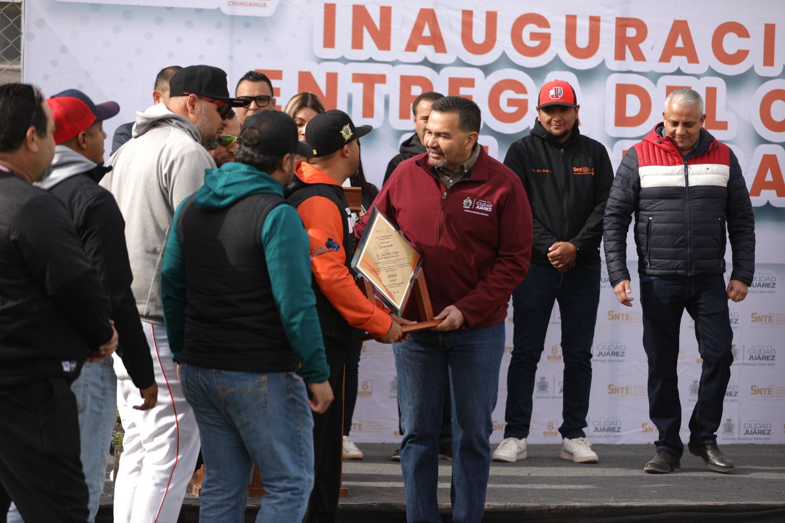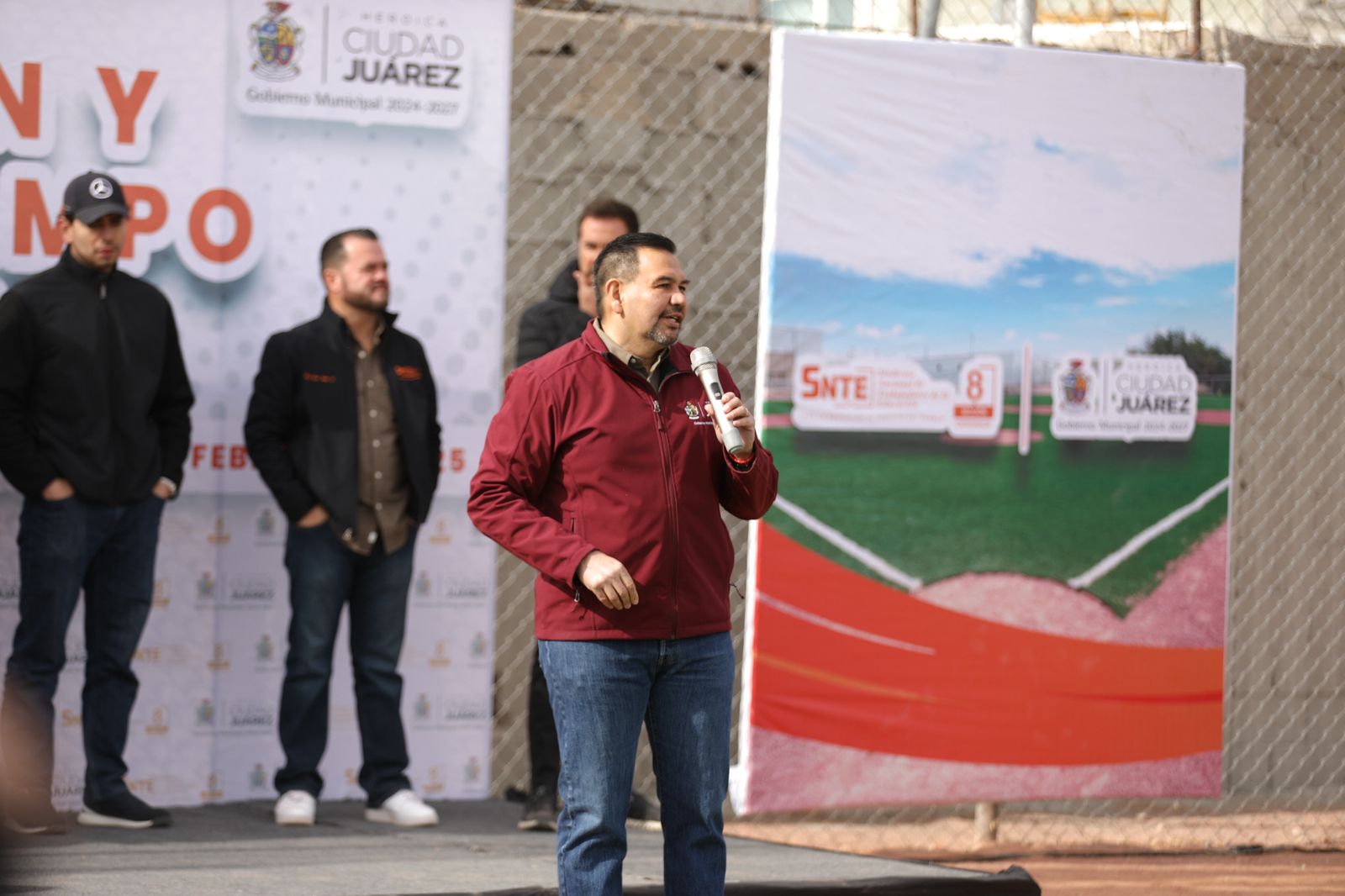 Entrega alcalde campo de Softball SNTE 8 como parte del Presupuesto Participativo