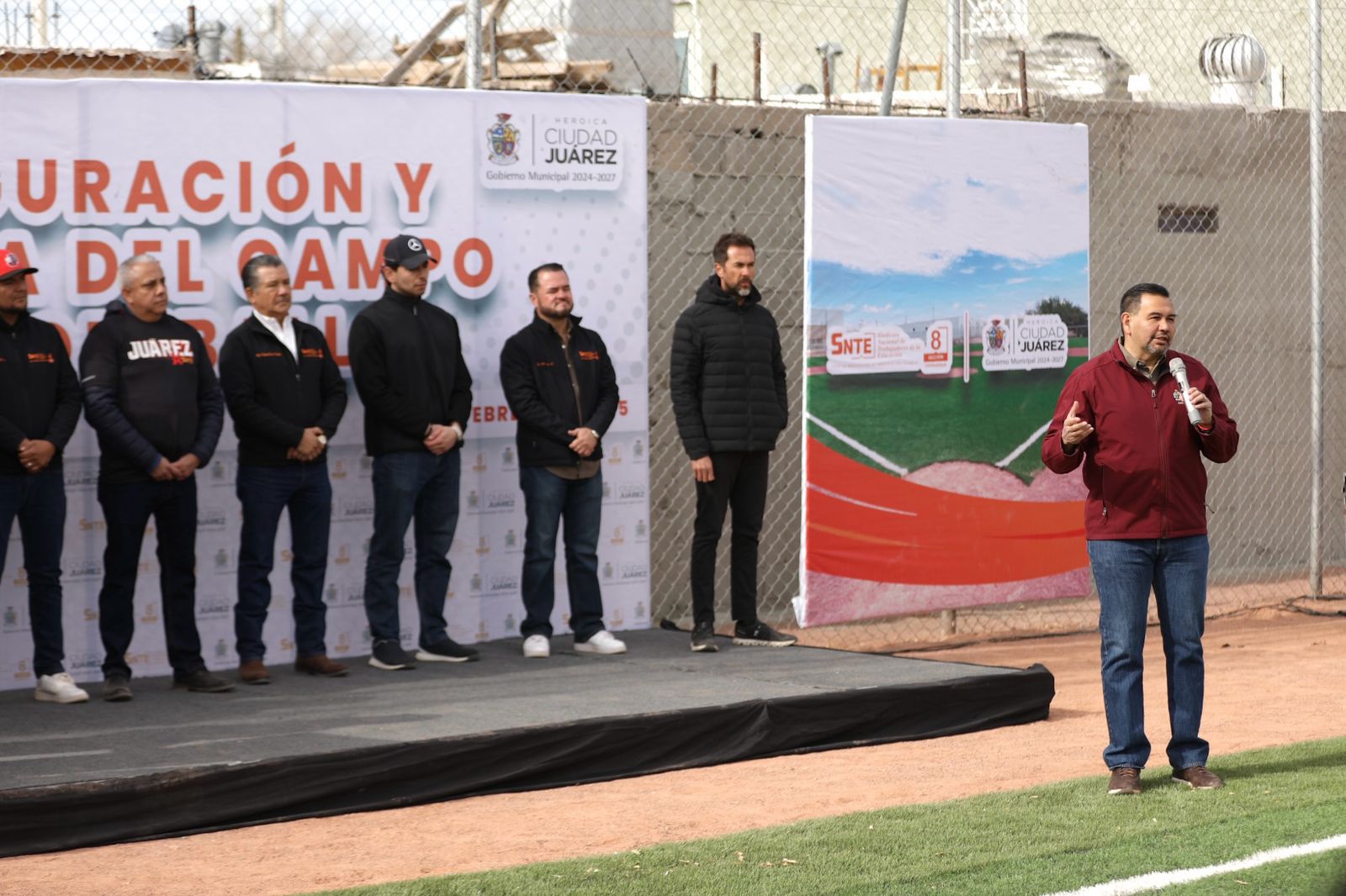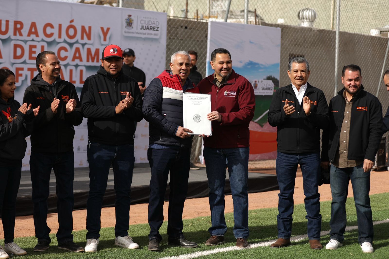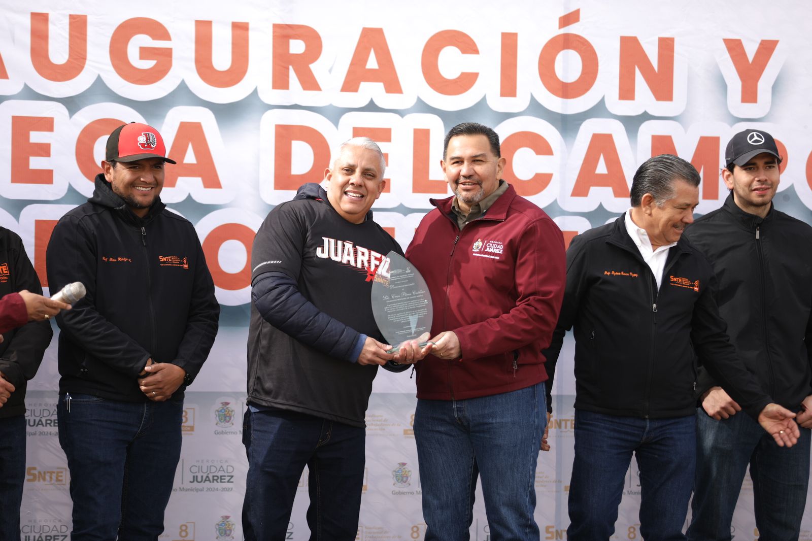 Entrega alcalde campo de Softball SNTE 8 como parte del Presupuesto Participativo