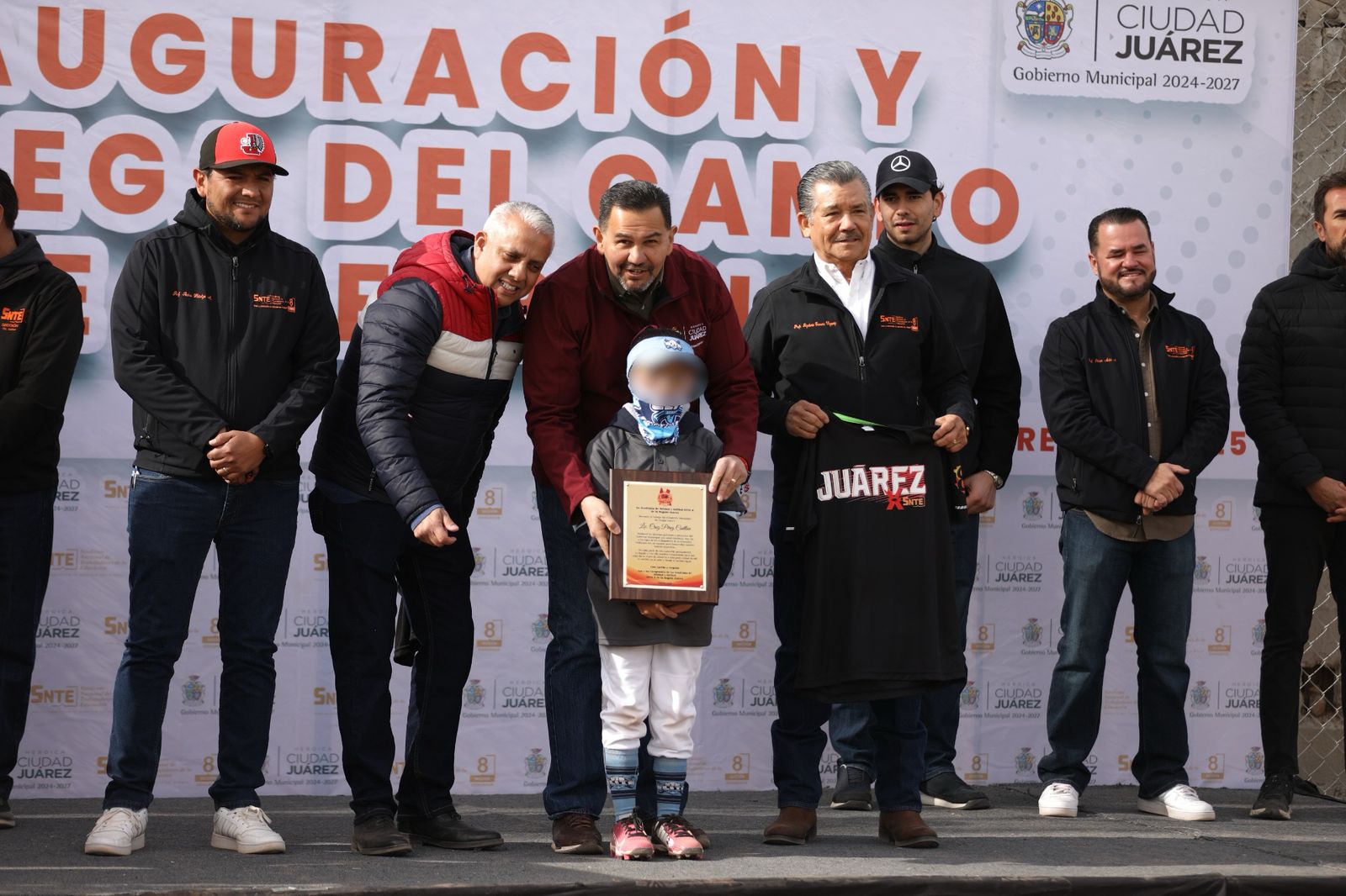 Muchas gracias por su empatía y reconocimiento a la niñez juarense que hoy tienen un nuevo lugar para poder llevar a cabo esta disciplina deportiva, y que también, será un patrimonio para una de las regiones más comprometidas que lucha con firmeza para sentar las bases de un mejor futuro, indicó.