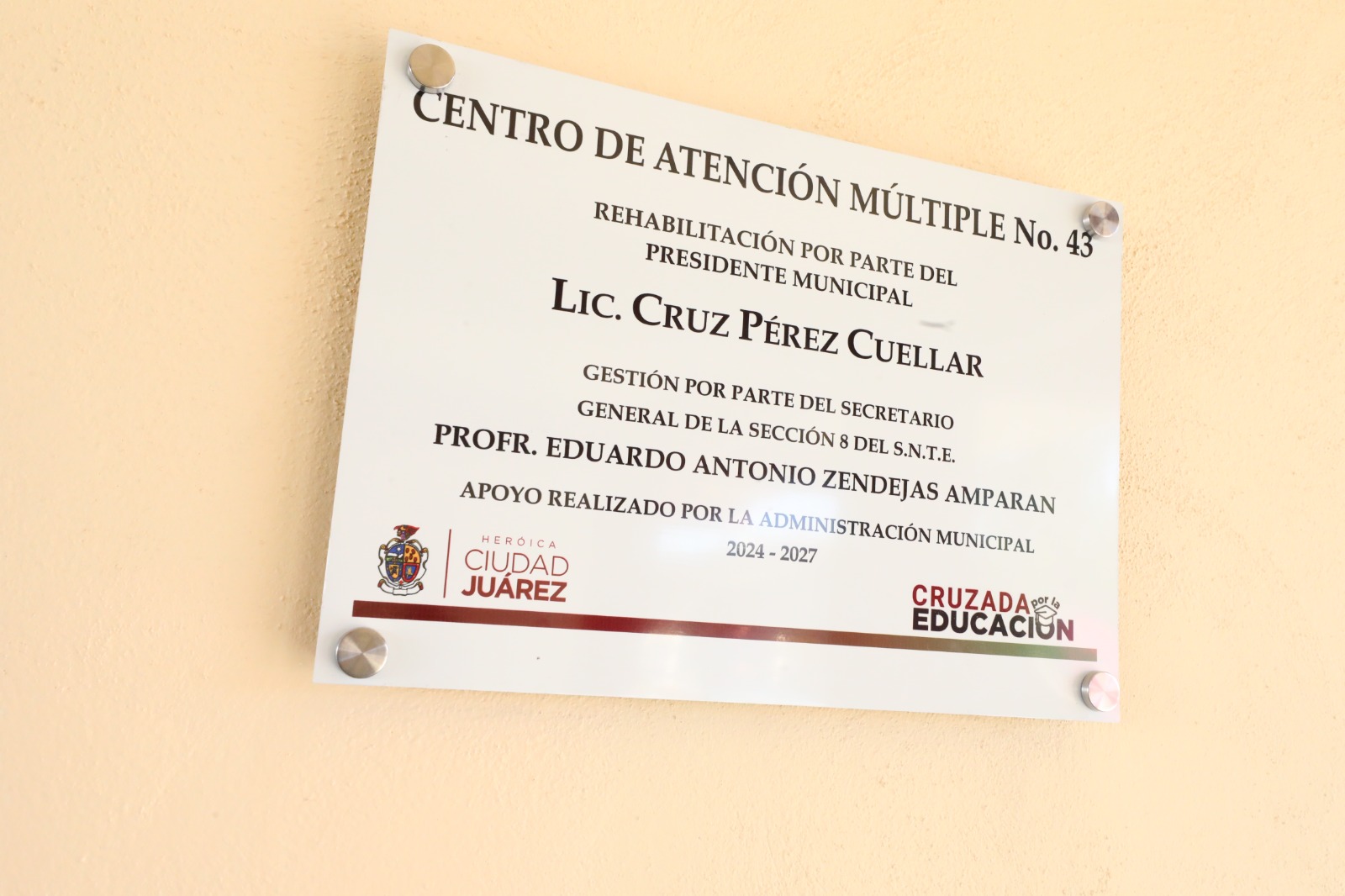 El Presidente Municipal, Cruz Pérez Cuéllar, reiteró su compromiso de seguir apoyando la educación pública, durante la entrega de obras de rehabilitación a los estudiantes del Centro de Atención Múltiple (CAM 43), localizado en la colonia Eréndira.