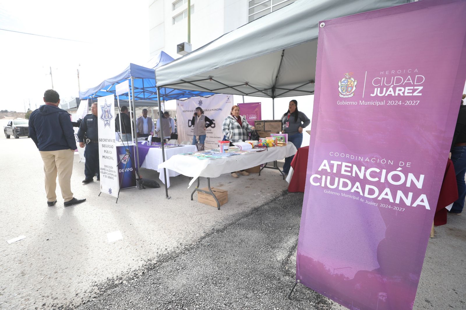 Este miércoles están presentes empleados de Atención Ciudadana, Centros Comunitarios, Instituto Municipal del Deporte, Dirección de Educación, Salud y la Secretaría de Seguridad Pública Municipal (SSPM), así como la Secretaría de Bienestar, por parte del Gobierno Federal.