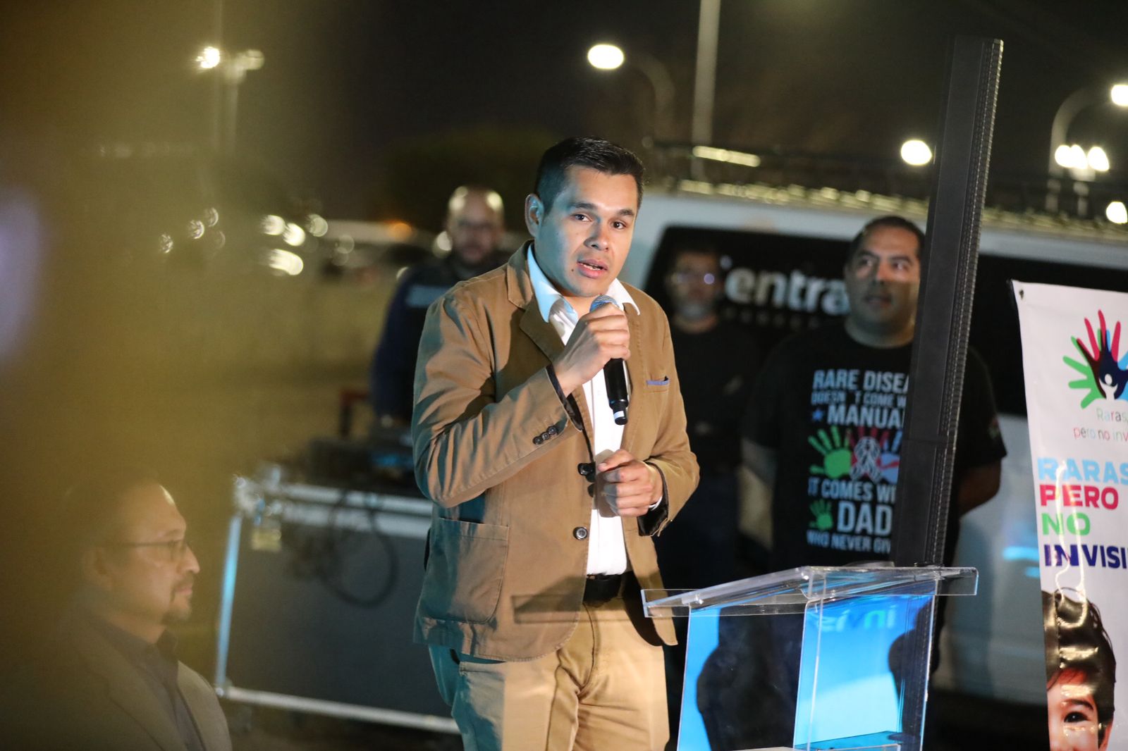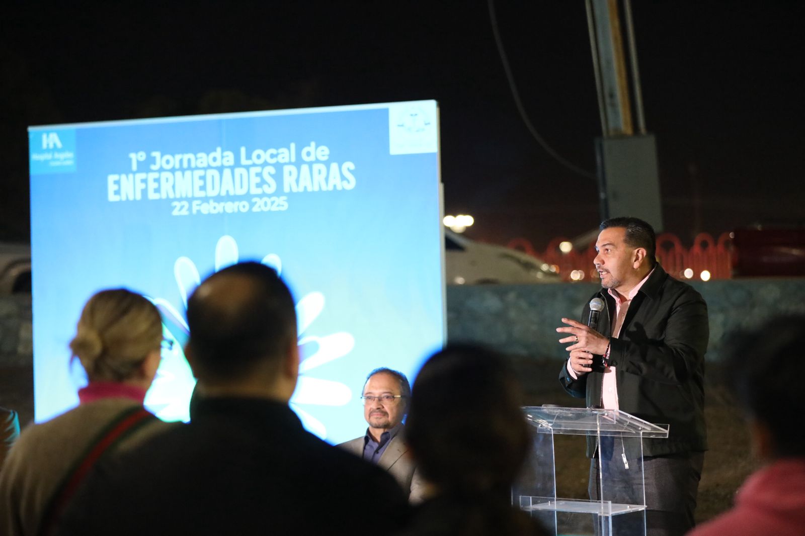 "Estamos aquí reunidos para conmemorar el Día Internacional de las Enfermedades Raras con el encendido de la "X", dijo.