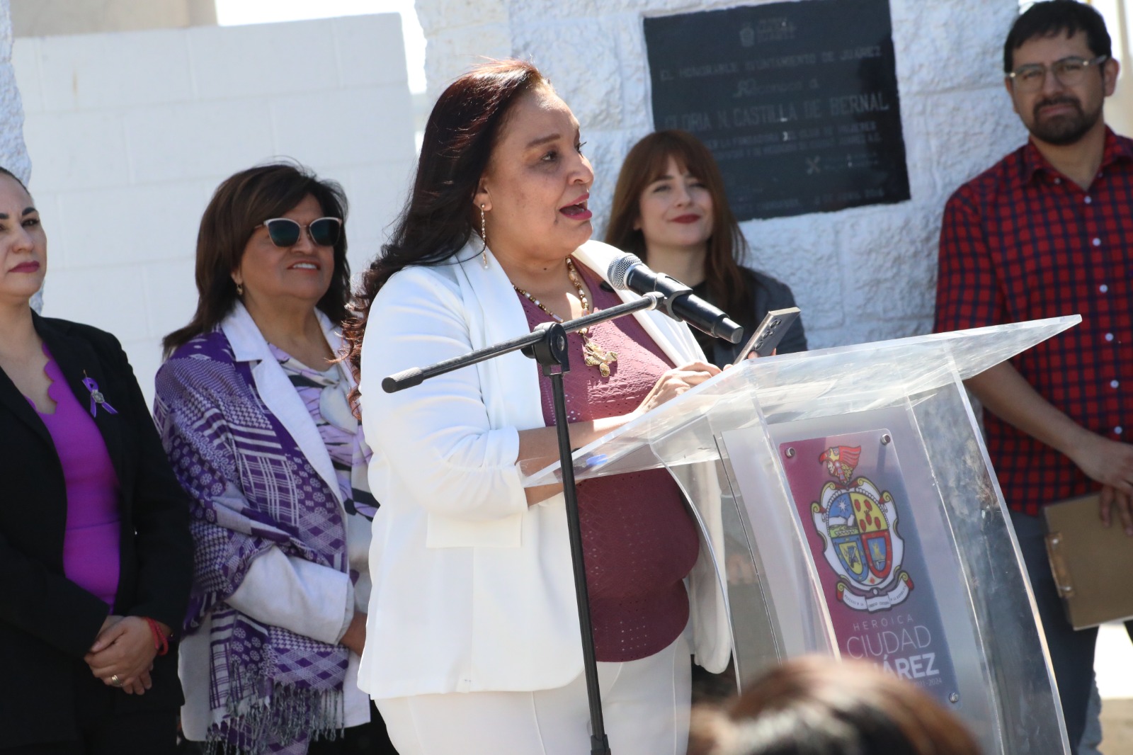 Verónica Suárez, en representación de la asociación civil Vamos Unidas por Juárez, comentó que la rotonda es la única en el país donde cada año se elige a la mujer ilustre, acción que seguirá llevándose a cabo gracias al apoyo del alcalde.