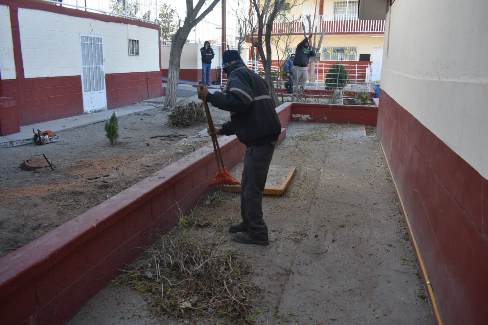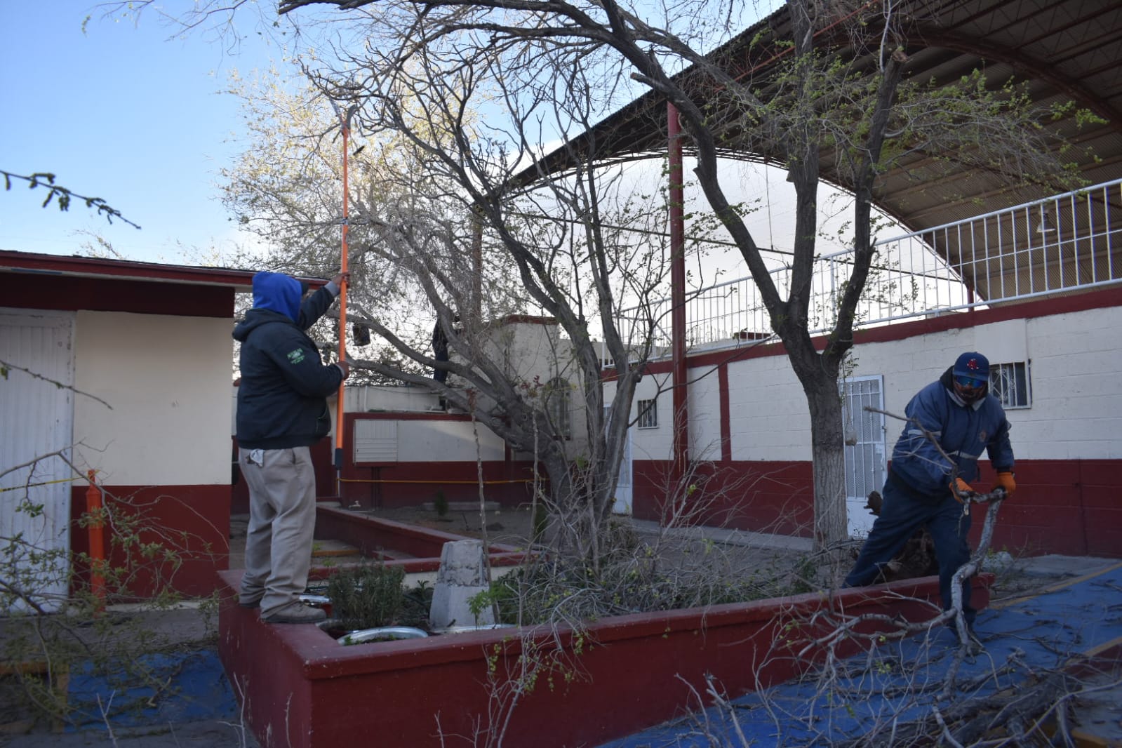 “Estuvo una cuadrilla trabajando en el retiro de vegetación que se encontraba en mal estado. Recordemos que estos días pasados hubo una contingencia ambiental de ráfagas de aire muy fuertes y eso generó la caída de árboles; en esta escuela se presentó dicho problema con algunas especies de gran tamaño y aprovechando que acudimos a realizar el retiro, atendimos las jardineras de la institución”, explicó.