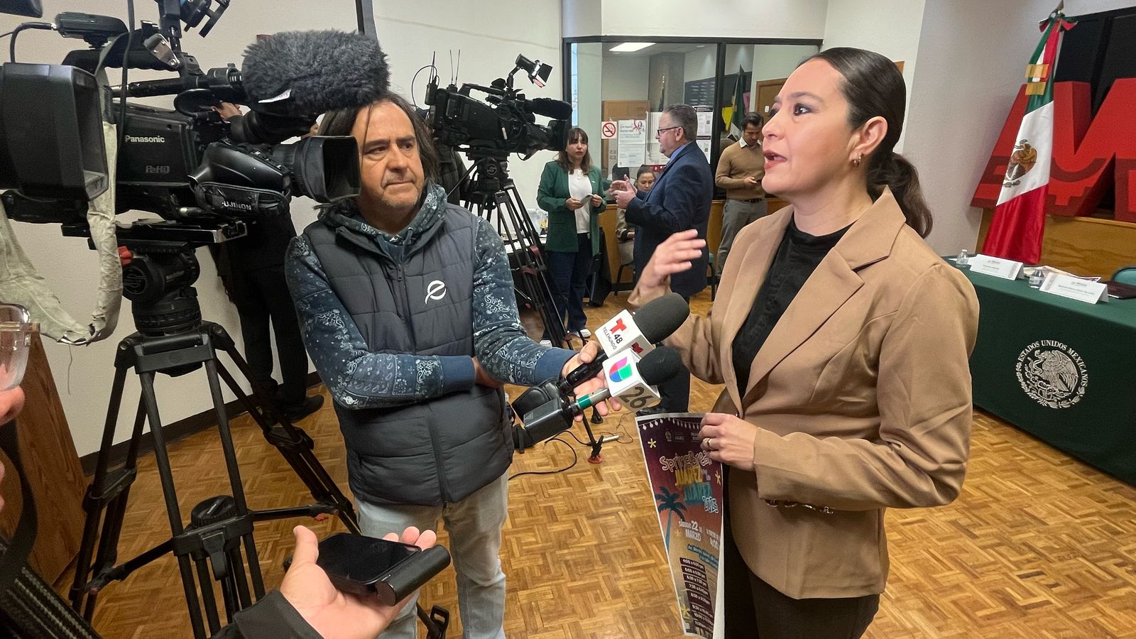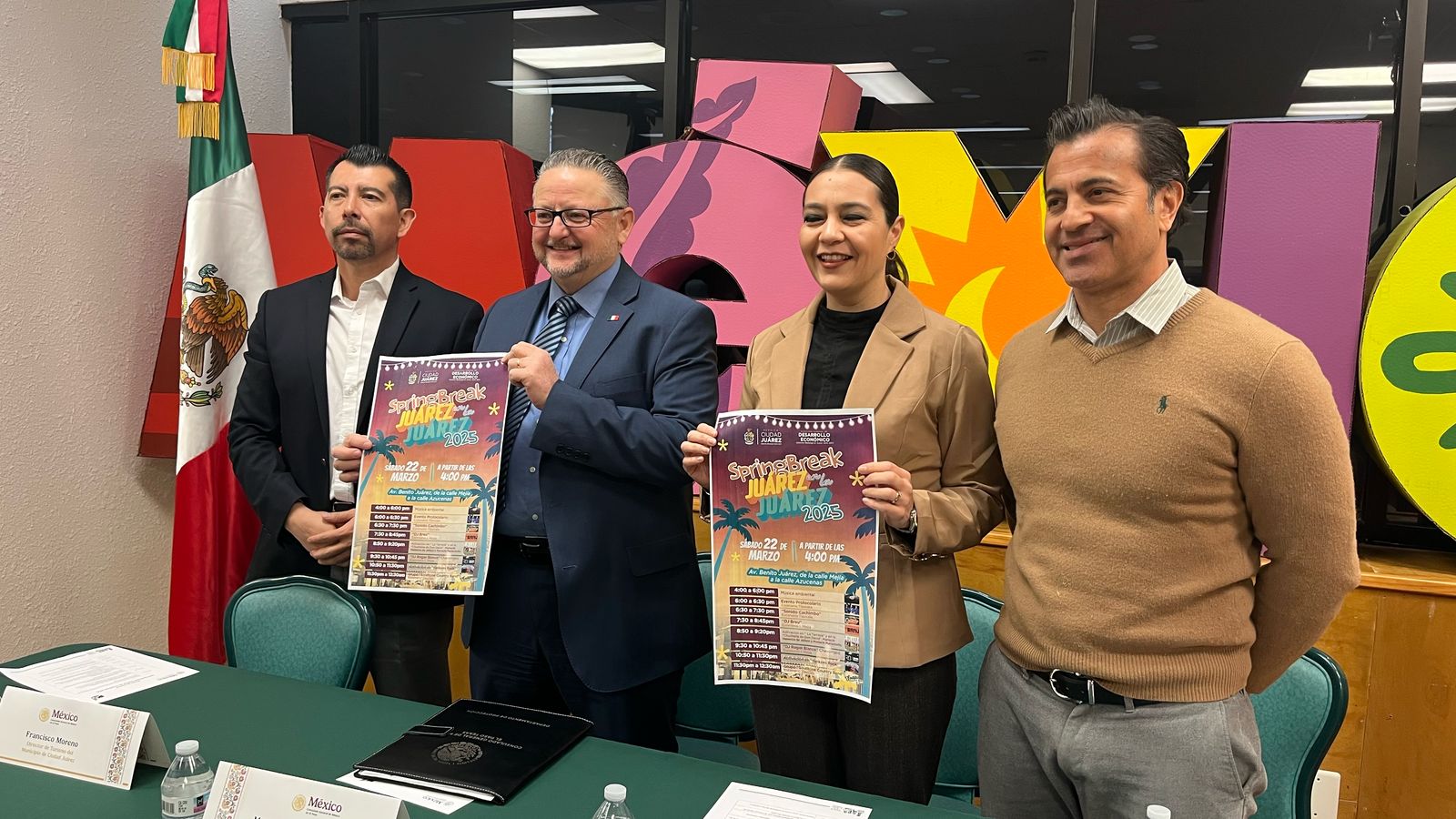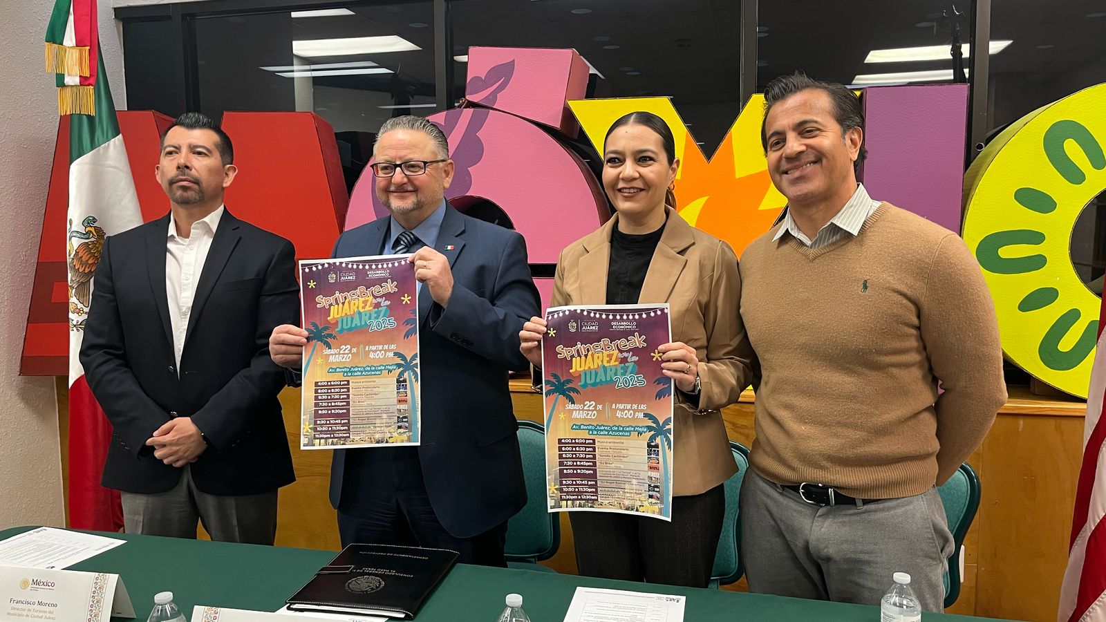 Con el objetivo de fortalecer los lazos entre las ciudades fronterizas e impulsar el turismo en Juárez, este día la directora de Desarrollo Económico del Municipio, Tania Maldonado Garduño y el Cónsul General de México en El Paso, Texas, Mauricio Ibarra Ponce de León, ofrecieron una conferencia de prensa para invitar a la comunidad de El Paso y Las Cruces, Nuevo México al "Spring Break en la Juárez 2025", evento que se llevará a cabo el sábado 22 de marzo a partir de las 4:00 de la tarde.